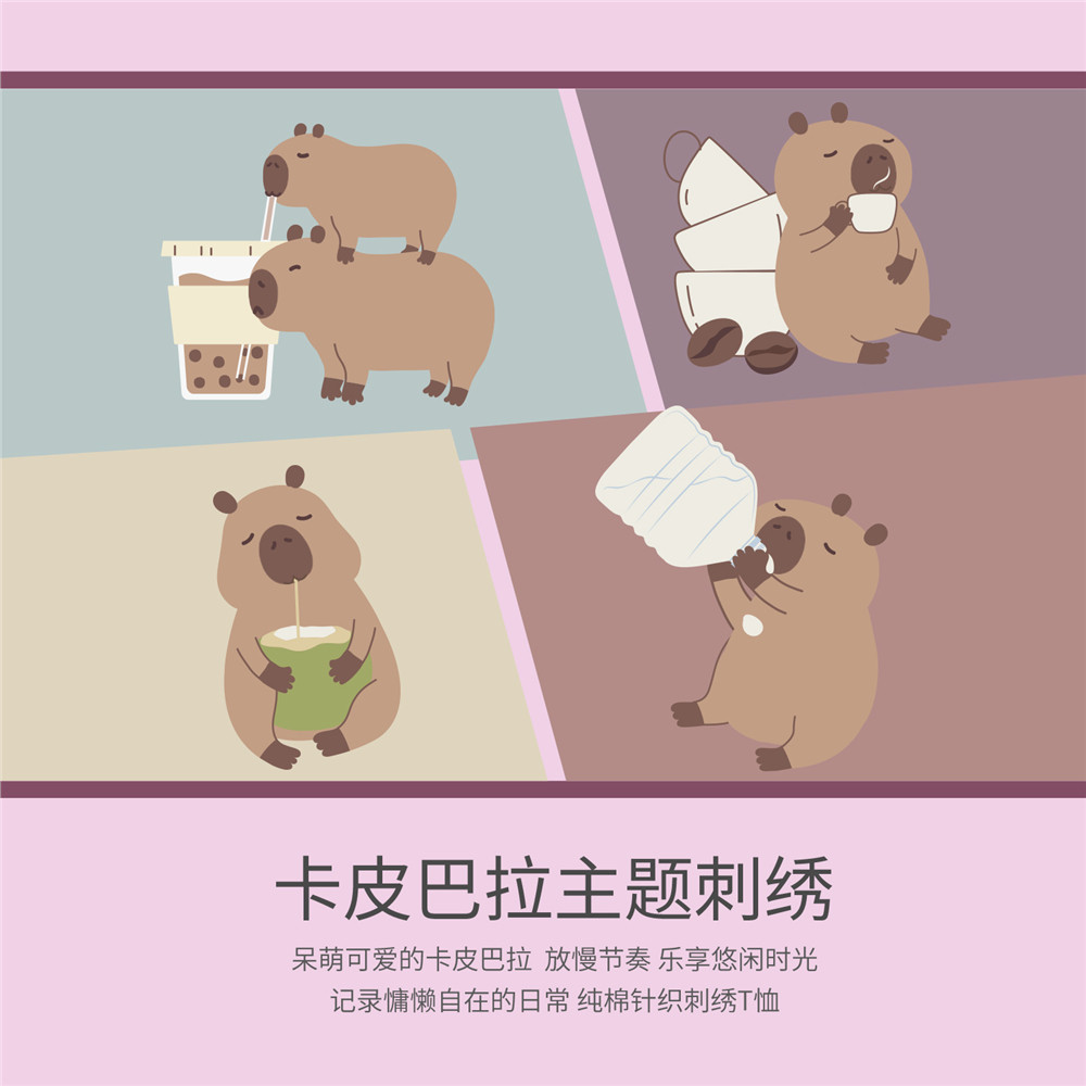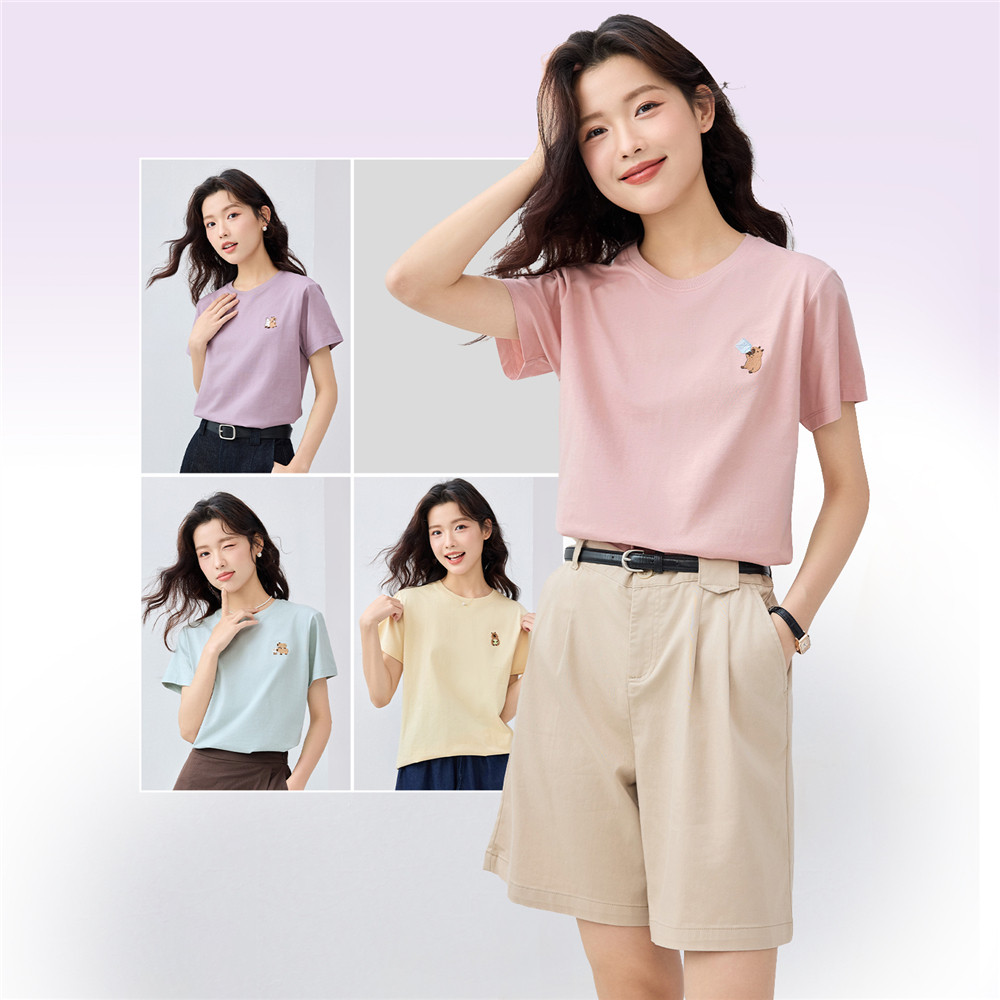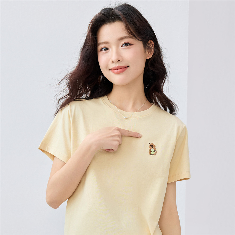 佐丹奴T恤女装纯棉卡皮巴拉主题刺绣圆领针织短袖T恤 05395383