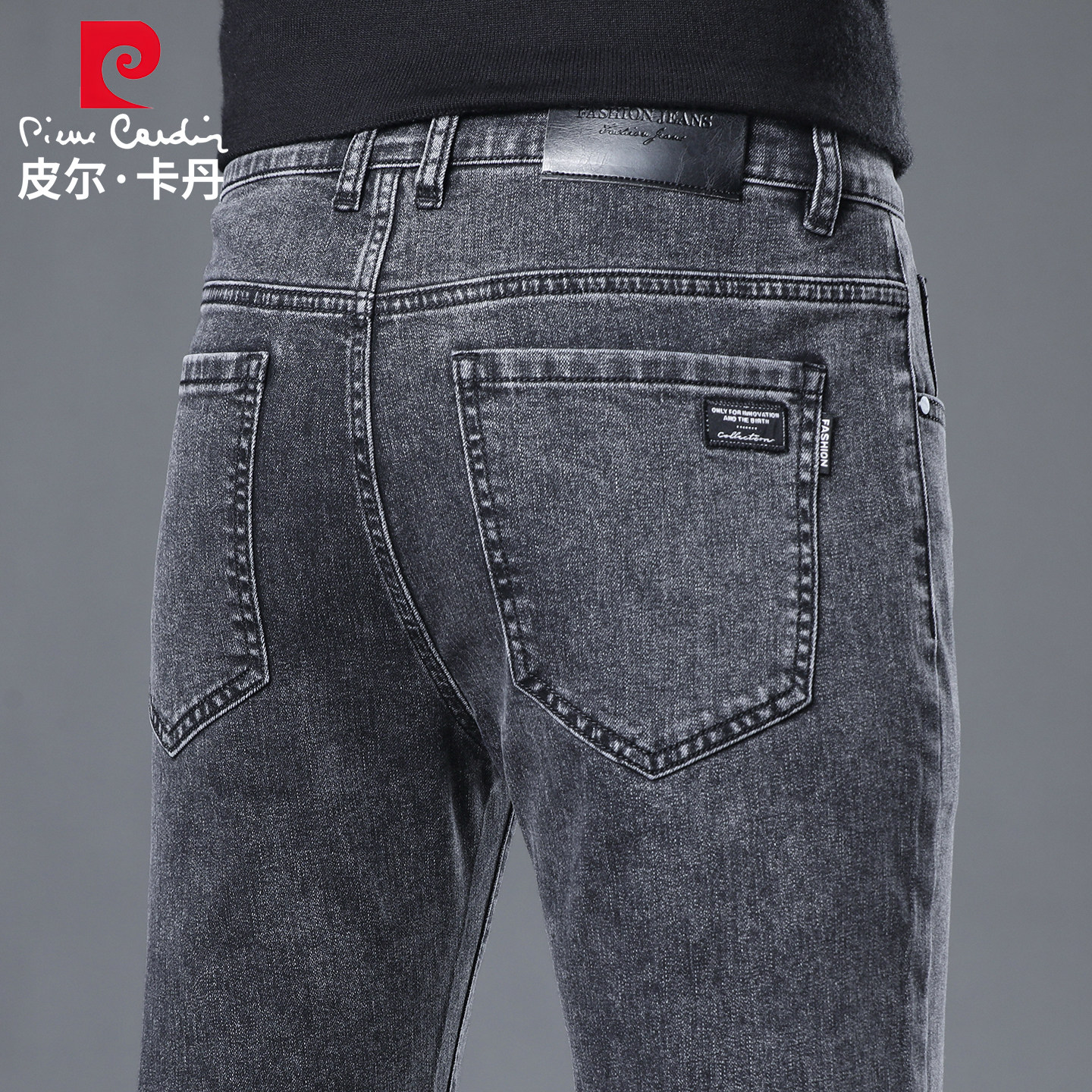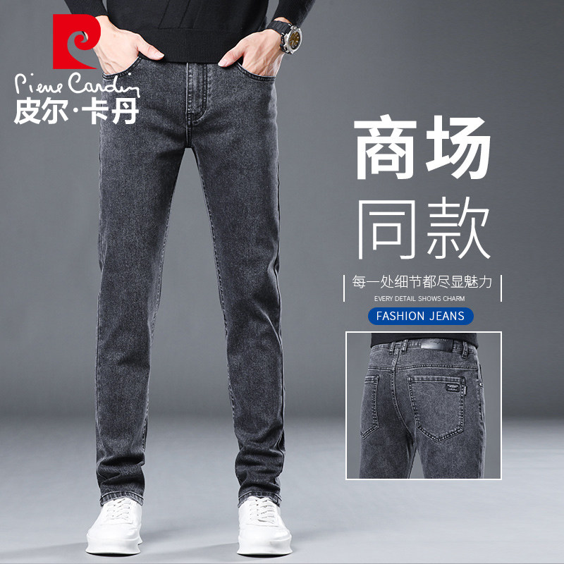 皮尔卡丹烟灰色牛仔裤男款