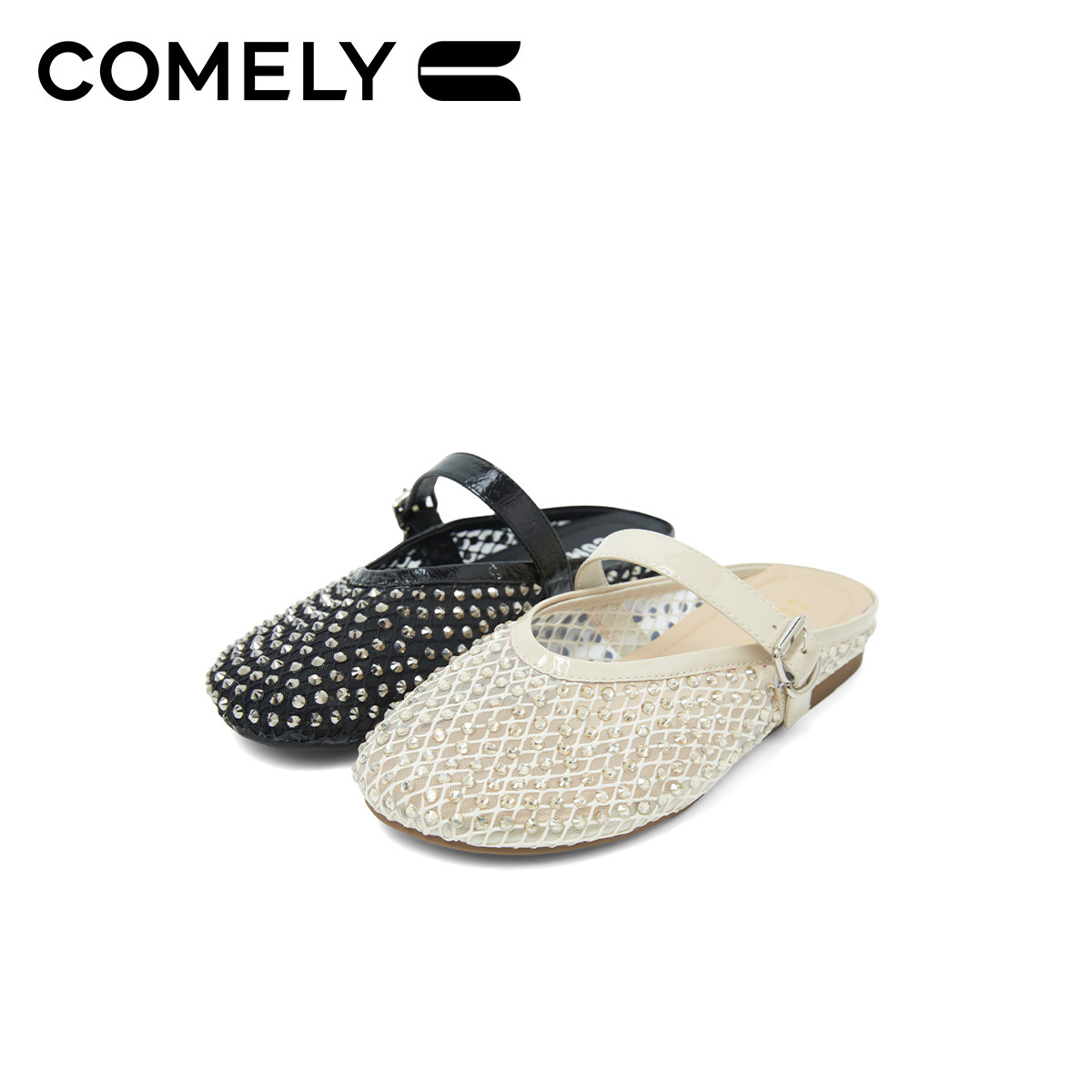 康莉商场同款渔夫鞋女2025年夏季新款透气水钻网面穆勒鞋KYQ52350