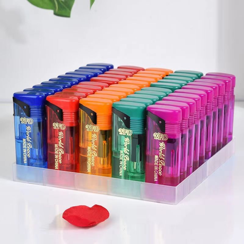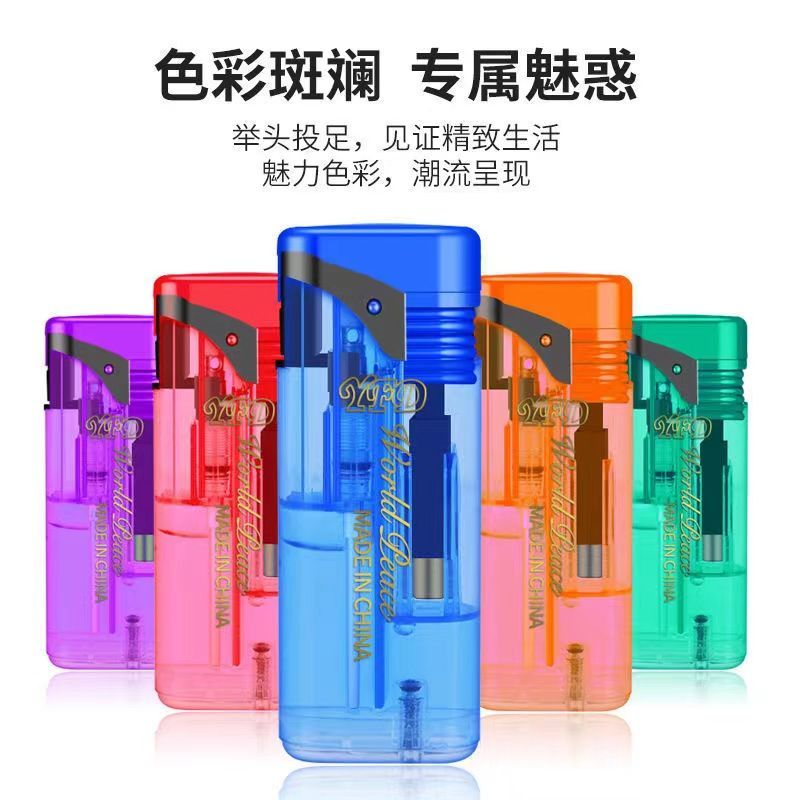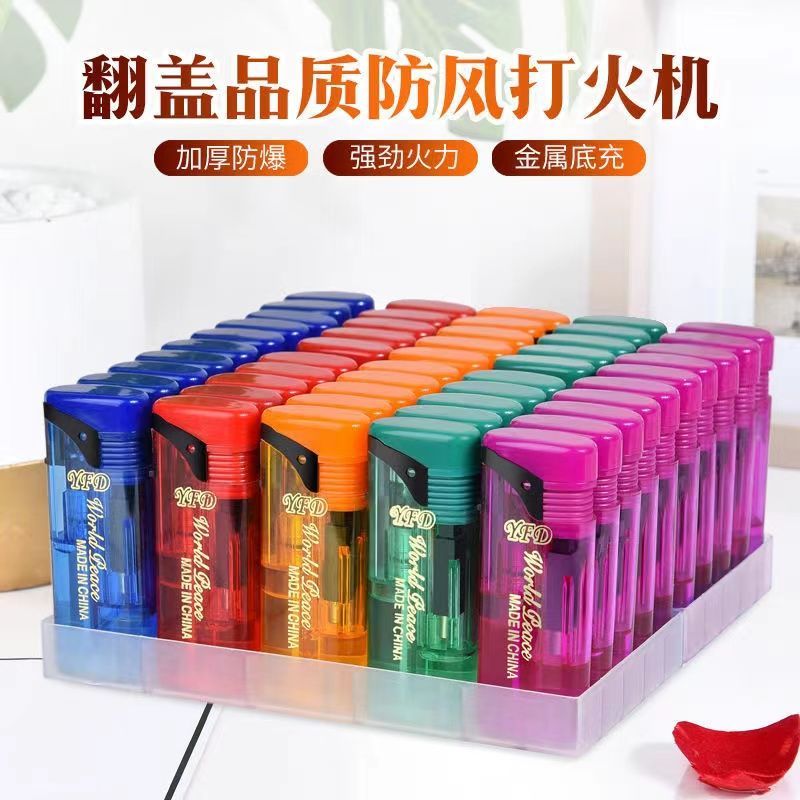 新款翻盖透明防风打火机五色可充气批发超市家用防风防爆包邮