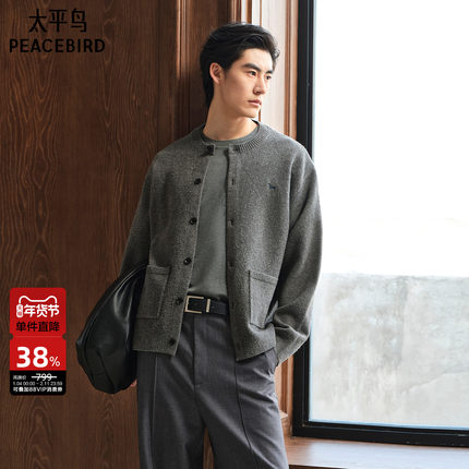 太平鸟男装 休闲毛衣25秋季新款小狗刺绣肌理磨毛纱男士休闲毛衫
