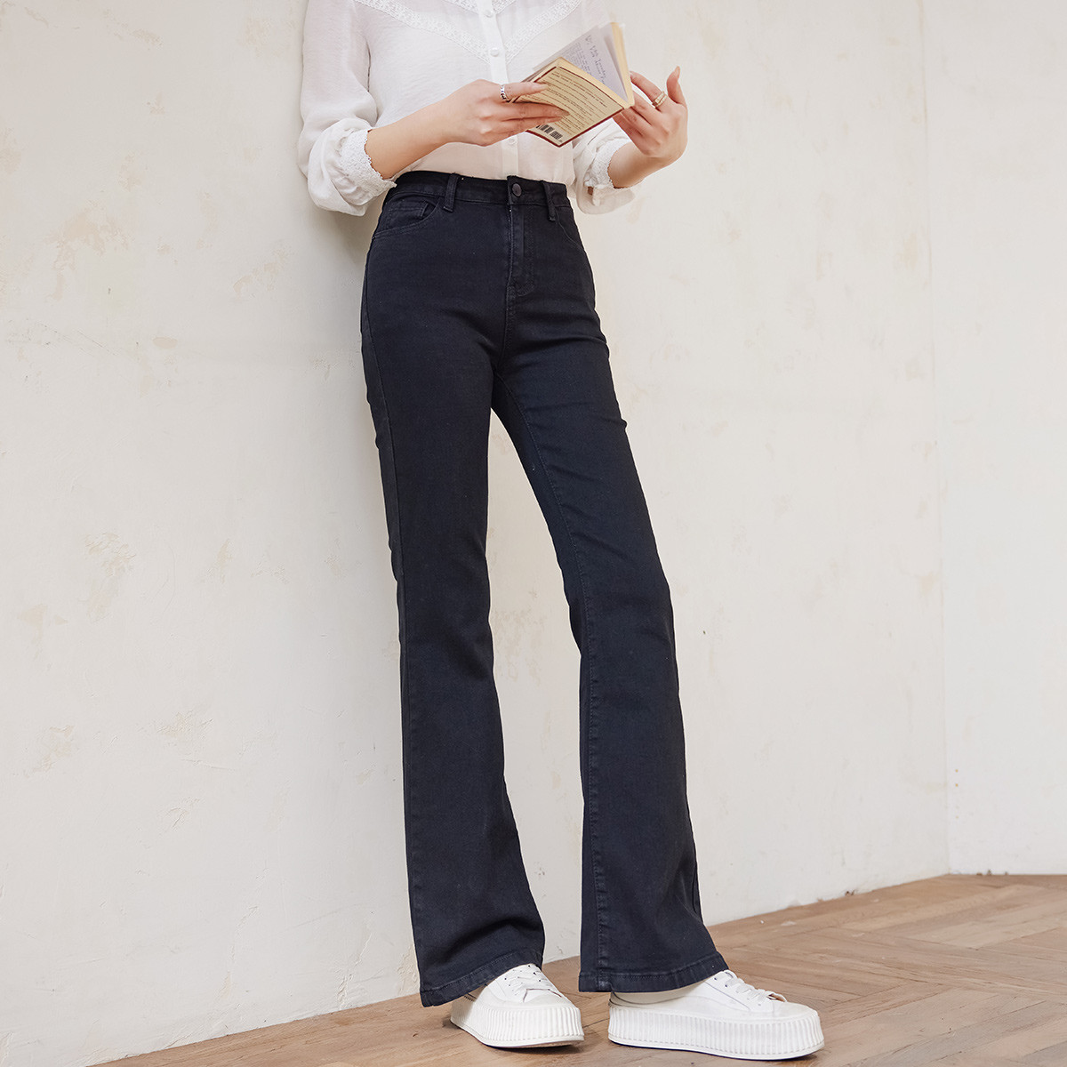 茵曼2025秋季新款美式牛仔裤女士直筒高腰显瘦显高微喇阔腿裤子