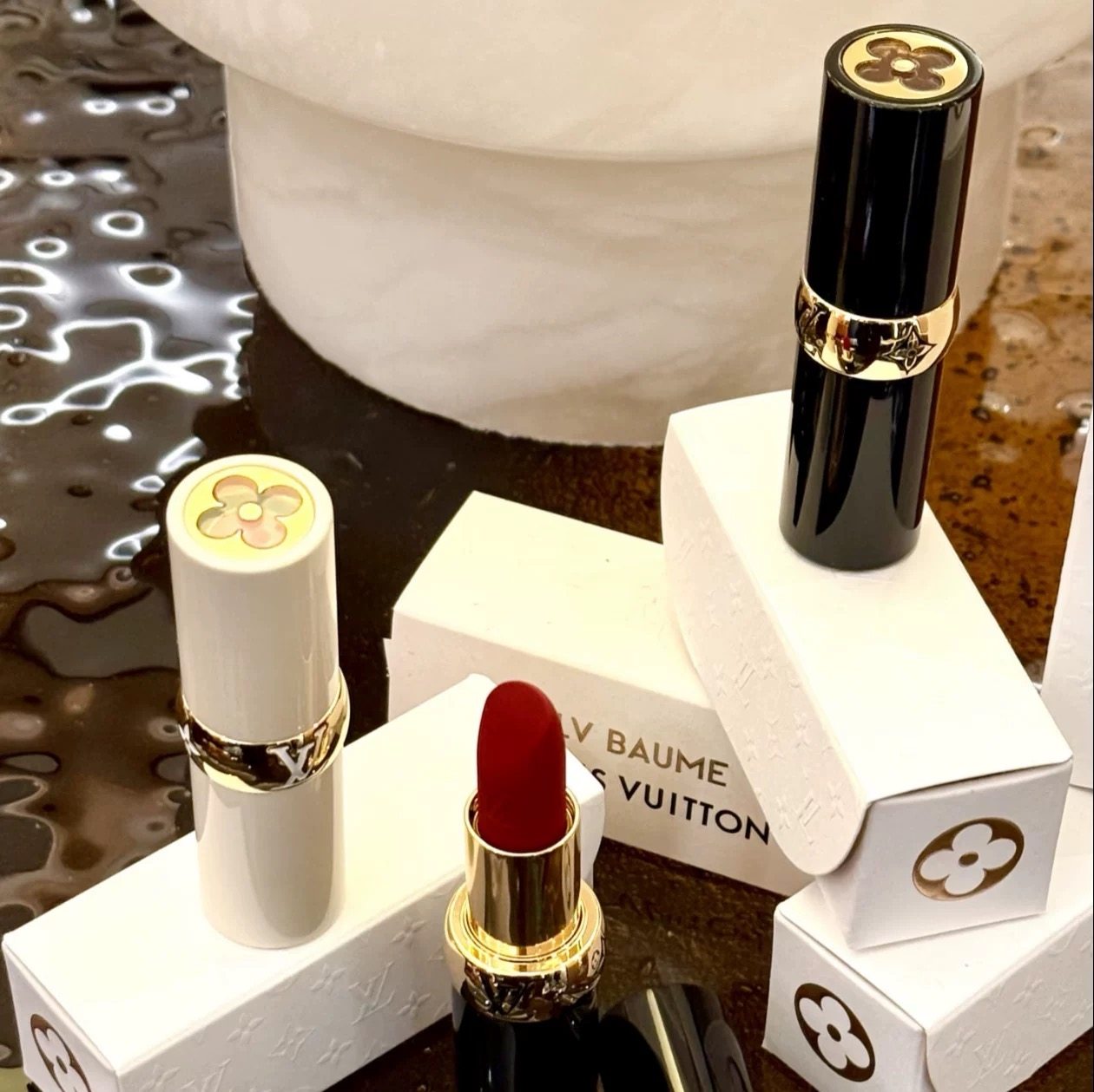 LV路易威登新品彩妆缎光哑光黑管口红203 854白管润唇膏滋润030