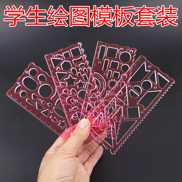 绘图模板套尺儿童绘画画美术套装万花尺小学生数学几何体波浪尺子