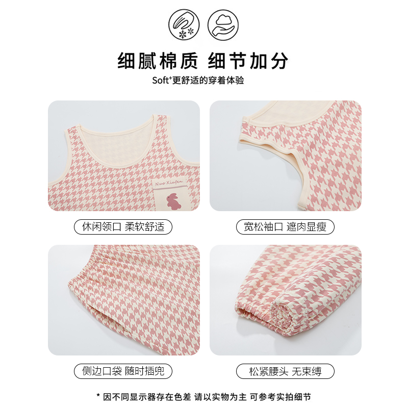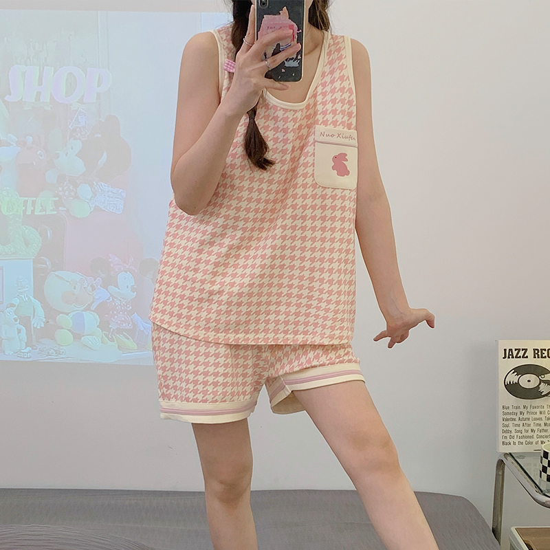 浪莎带胸垫睡衣女士夏季纯棉无袖背心短裤甜美大码薄款家居服套装
