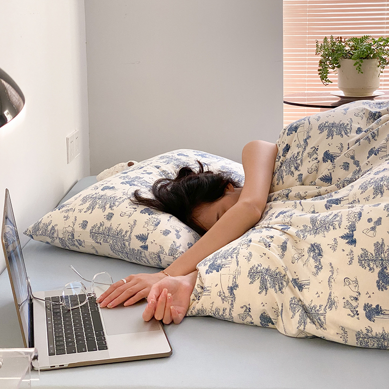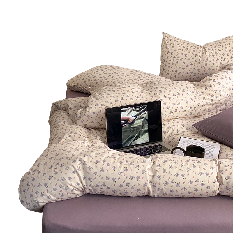 ins小碎花裸睡全棉床品 A类纯棉天竺棉四件套 小清新印花被套套件