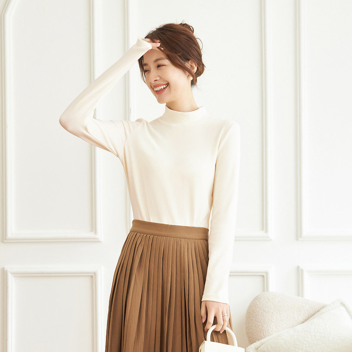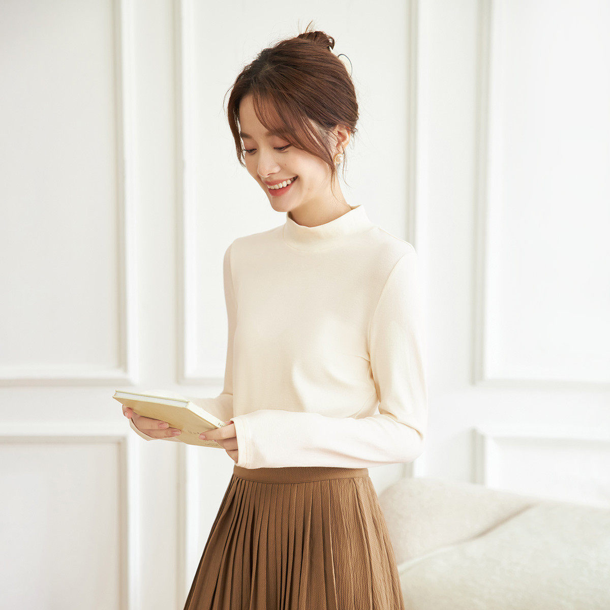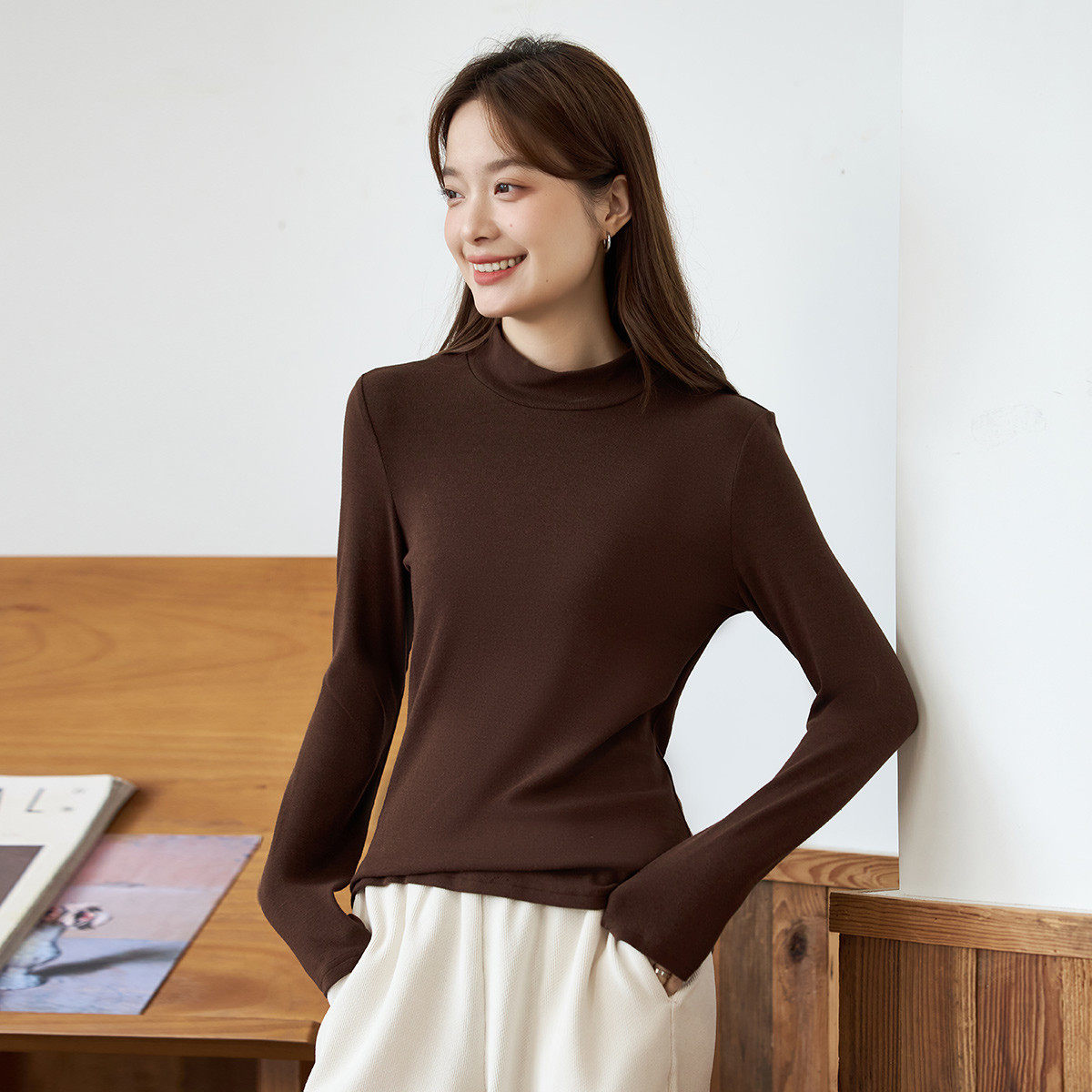 茵曼2026春季新款长袖t恤女士正肩轻薄款内搭打底衫爆款修身上衣