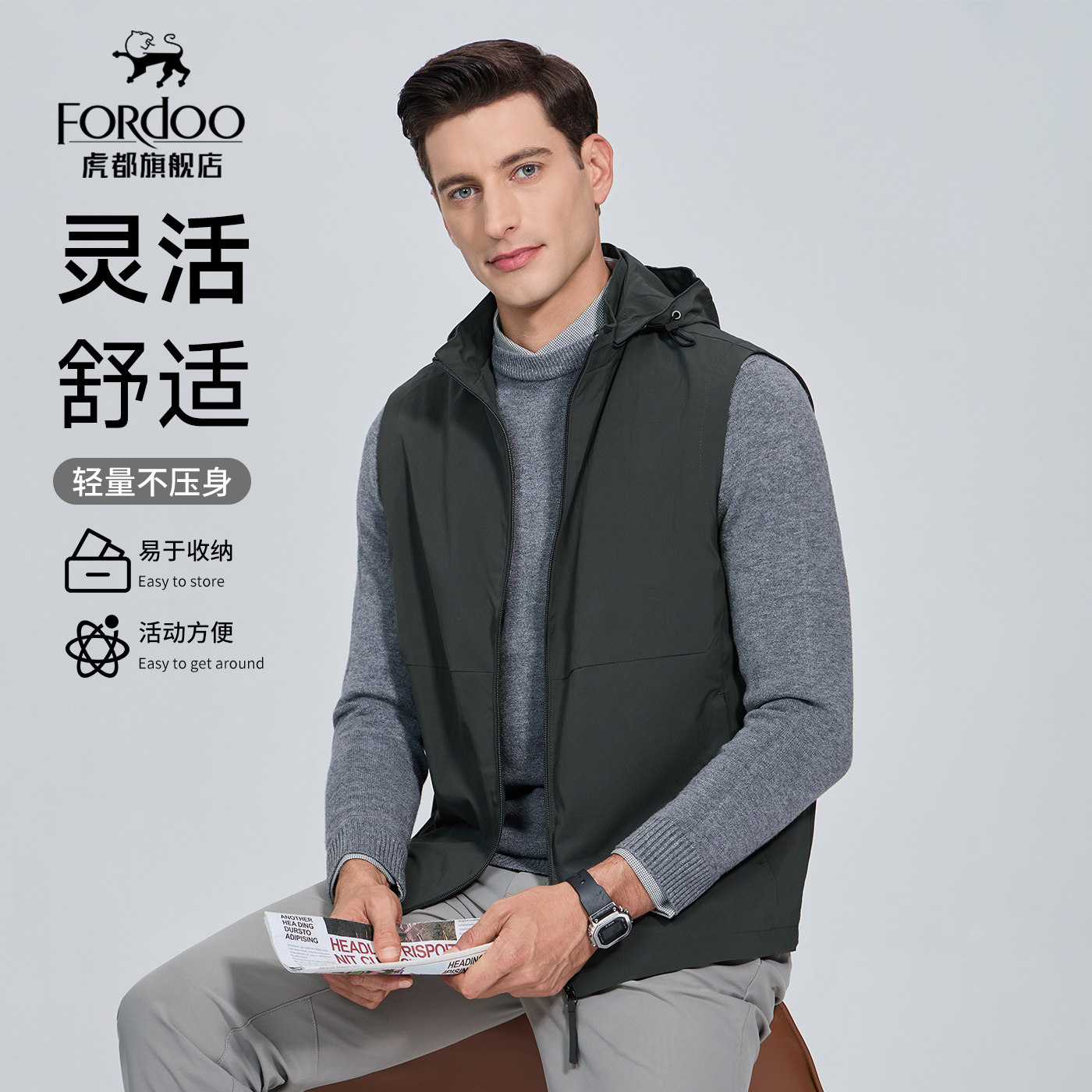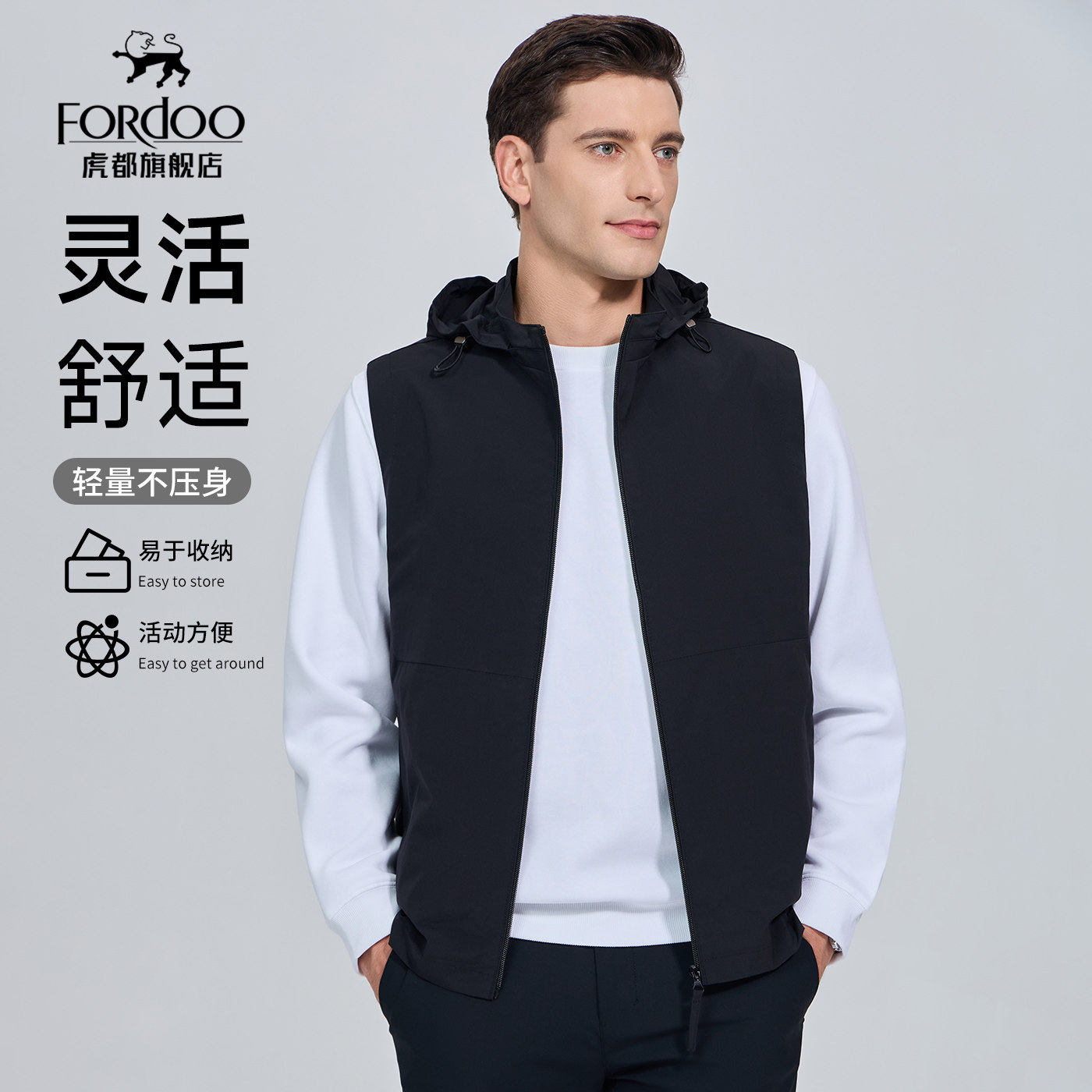 【连帽马甲】虎都秋春新品男式背心轻薄透气叠穿宽松开衫廓形夹克