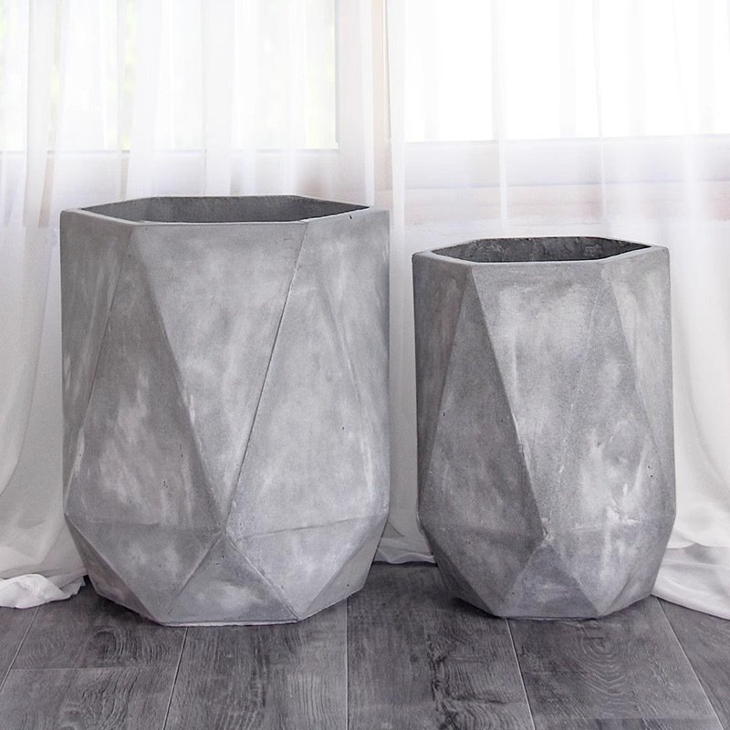 北欧风桌面菱形镁泥花盆锣鼓落地多肉植物盆栽花盆手工镁泥花盆