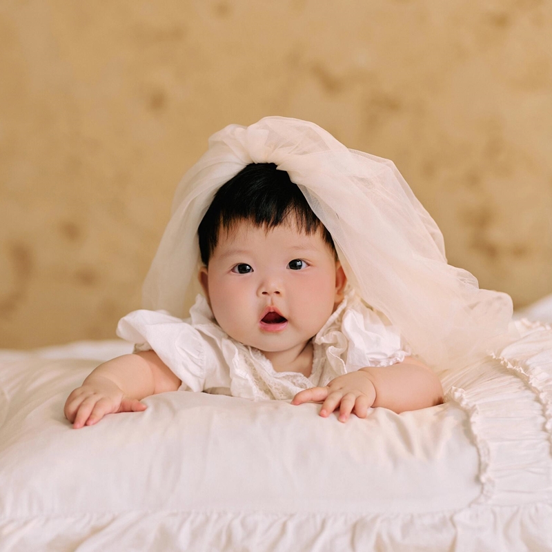 儿童摄影主题服装复古公主小婚纱白色头纱宝宝百天照周岁照拍照裙