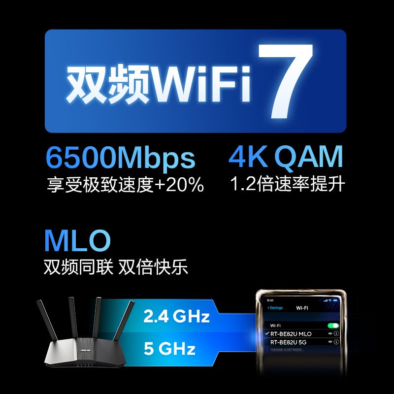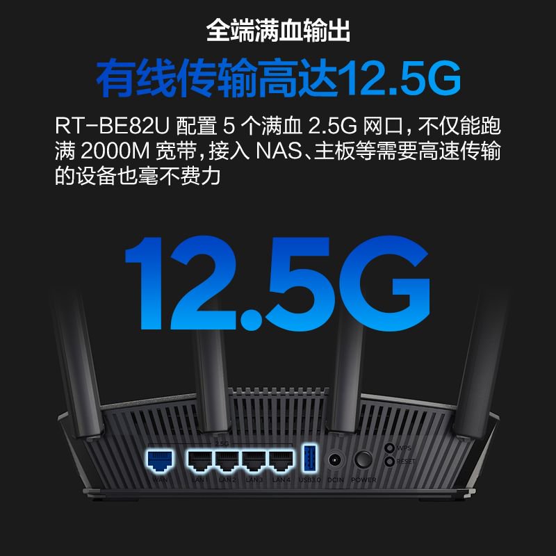 【WIFI7新品】ASUS华硕RT-BE82U WiFi7电竞路由器无线家用游戏路由 5个2.5G口Ai路由全屋wifi7套装随心组