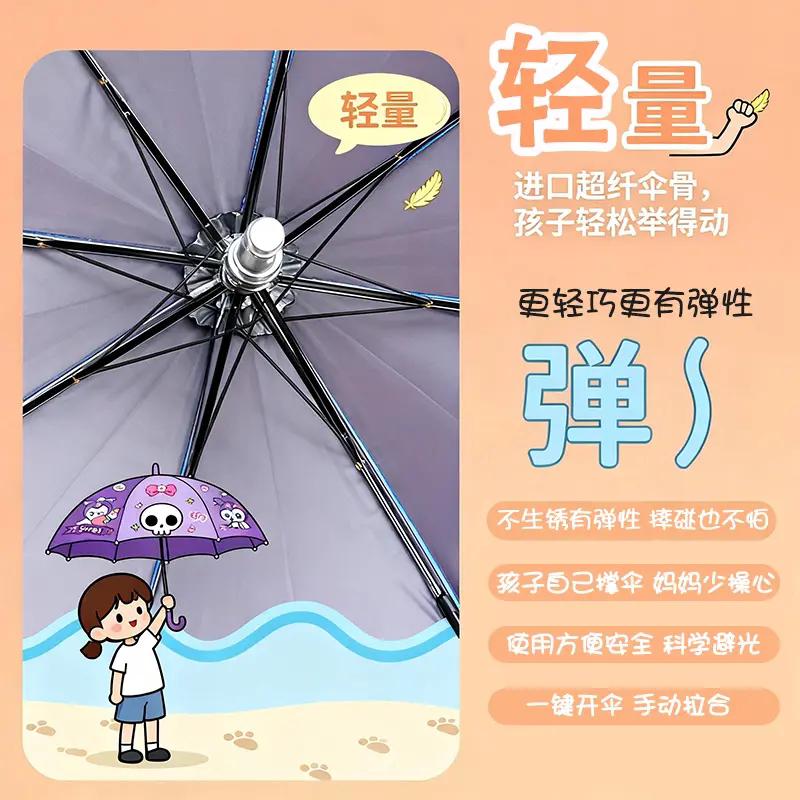 儿童卡通半自动防戳防晒晴雨伞