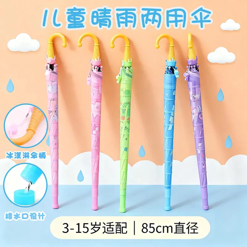儿童雨伞晴雨两用卡通半自动可爱长柄雨伞男孩女孩轻便防戳防晒伞
