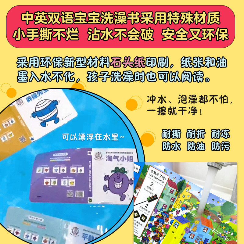 奇先生妙小姐专注力培养洗澡游戏书 全2册 小虫先生 爱心小姐 英国经典儿童读物 中英双语 图画捉迷藏 儿童亲子启蒙阅读游戏书