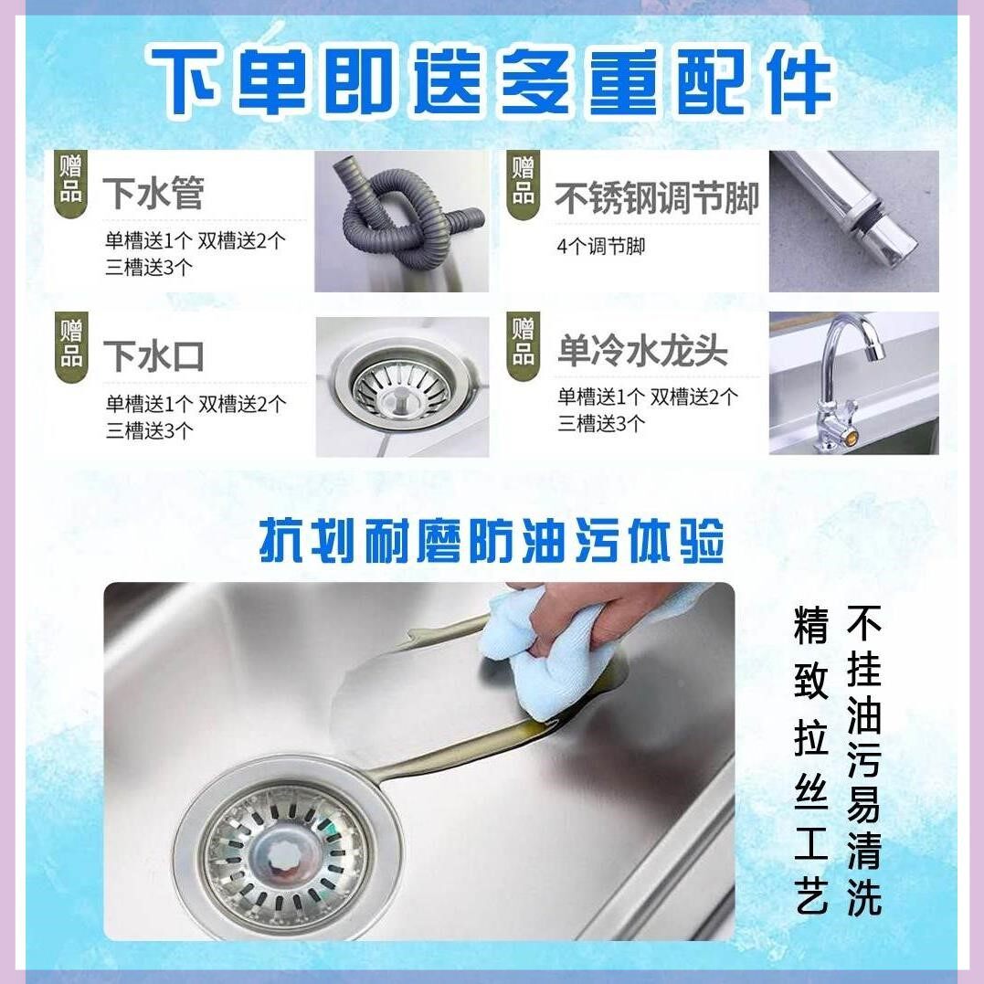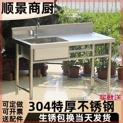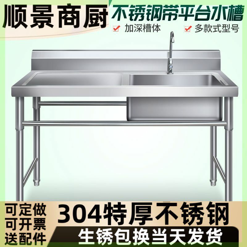 304不锈钢水槽厨房支架商用饭店洗衣台洗菜盆洗碗池带平台洗刷盆