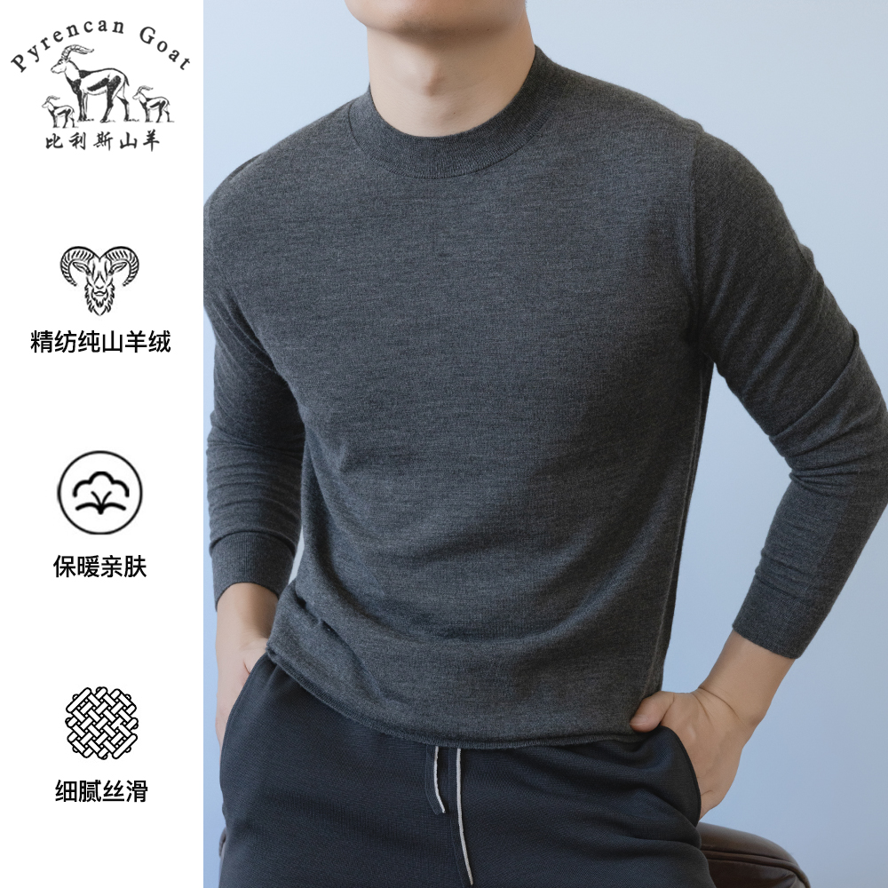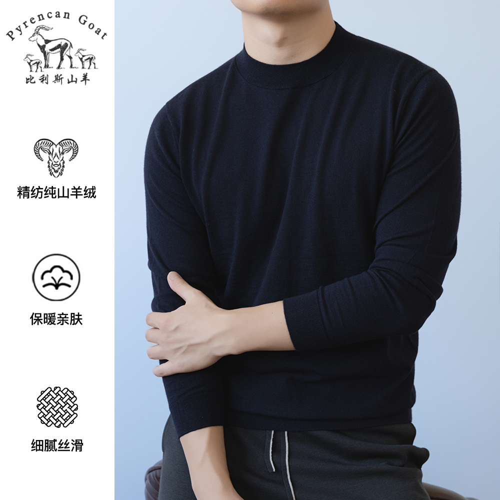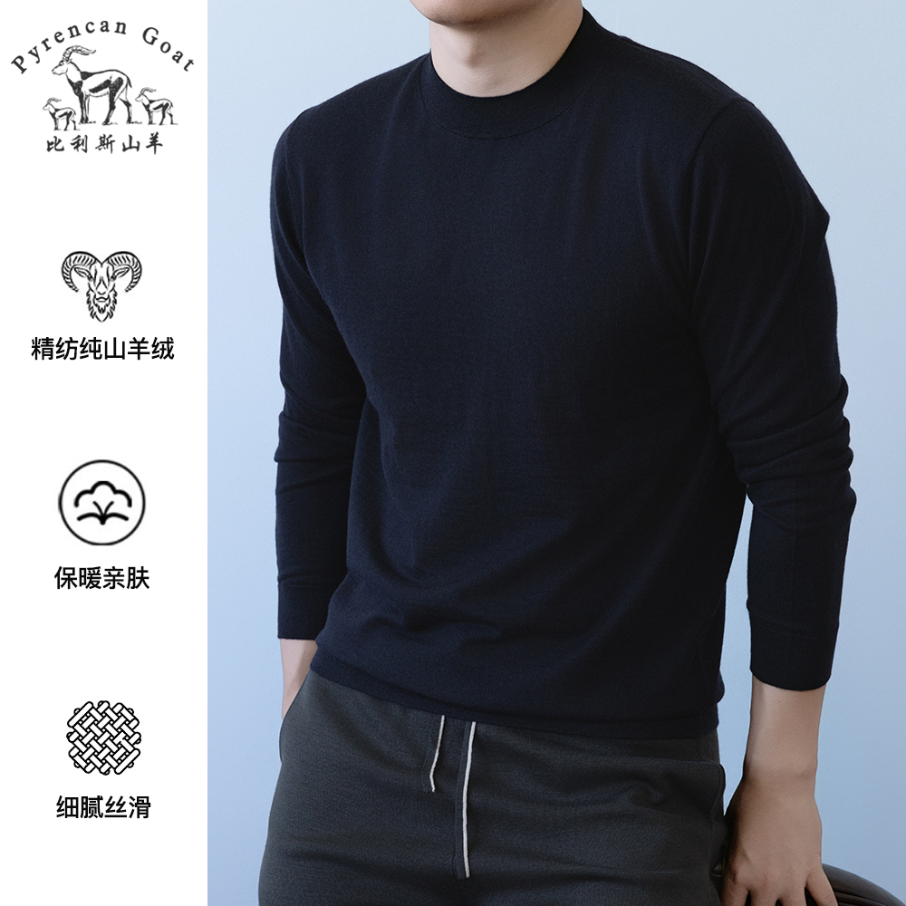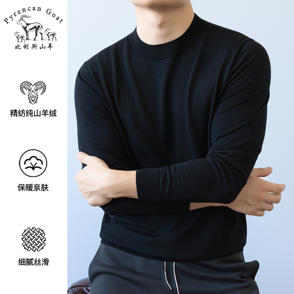 【薄款精纺纯山羊绒】秋冬男士圆领纯色针织T恤衫套头毛衣打底衫