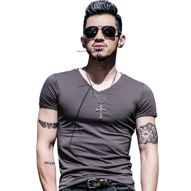 3968区男士短袖t恤春夏季v领男款紧身纯棉打底衫修身衣服潮