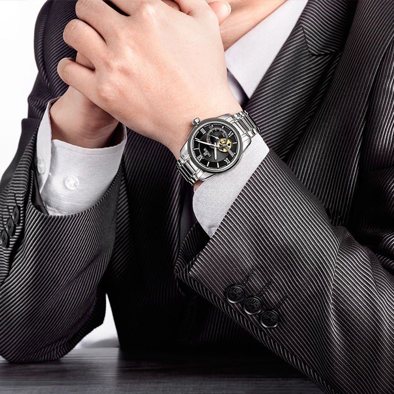 一家正品依波表光环系列机械表俏巧表盘钢带机械男表1098