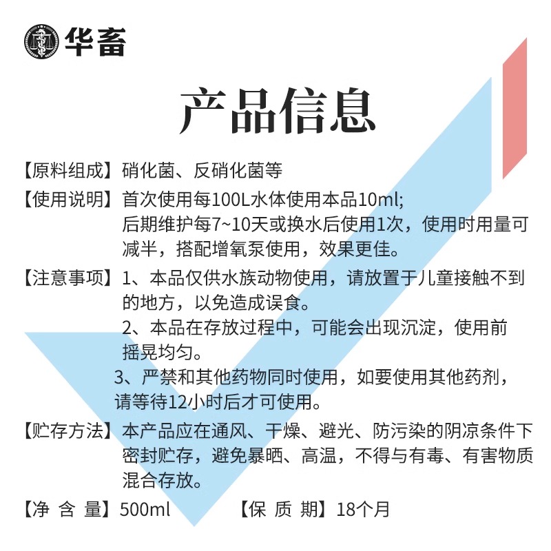 华畜硝化细菌鱼缸用净水剂养鱼净化水质稳定剂分解鱼粪消化活菌液