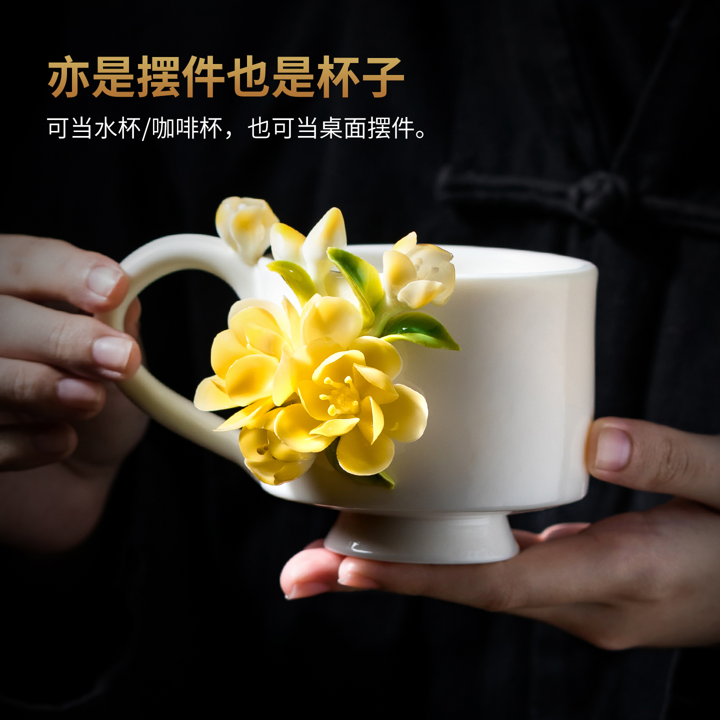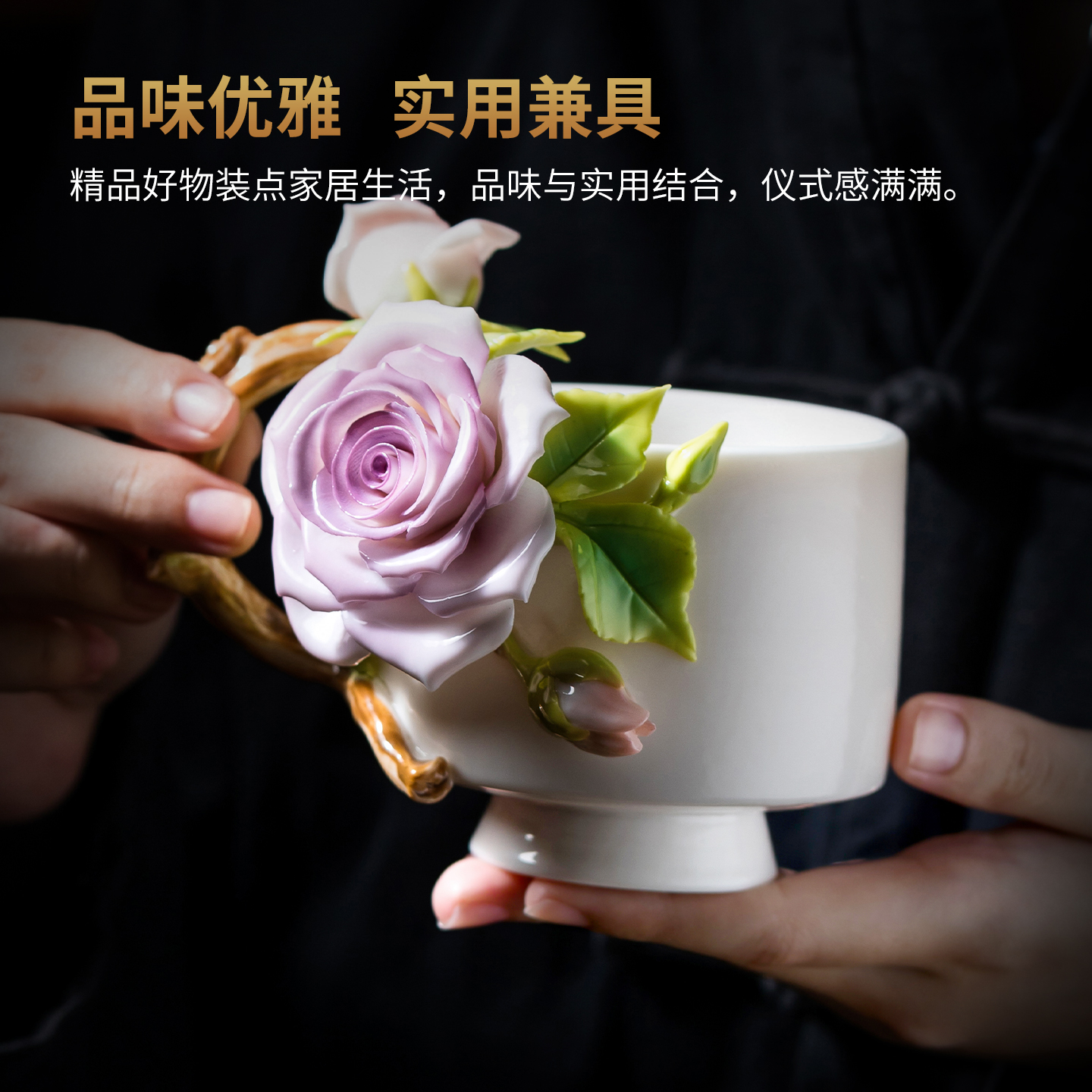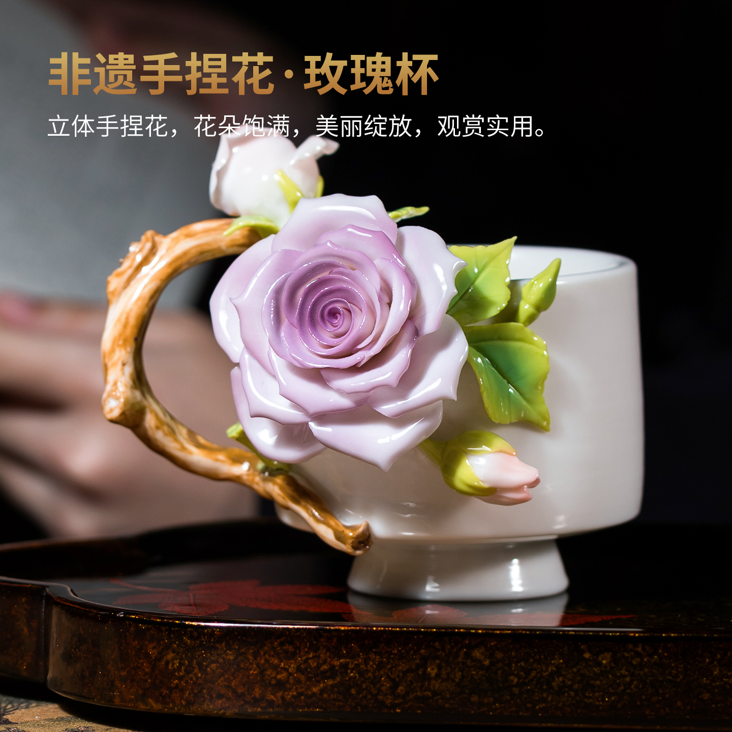 玫瑰花手捏花陶瓷杯子咖啡杯水茶杯文创送女生闺蜜生日礼物高颜值