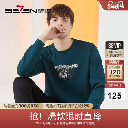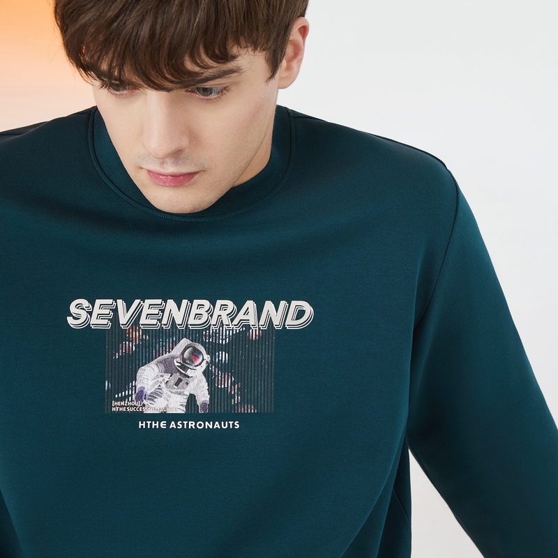【三防】柒牌卫衣男士秋季新款时尚休闲宇航员印花长袖套头衫