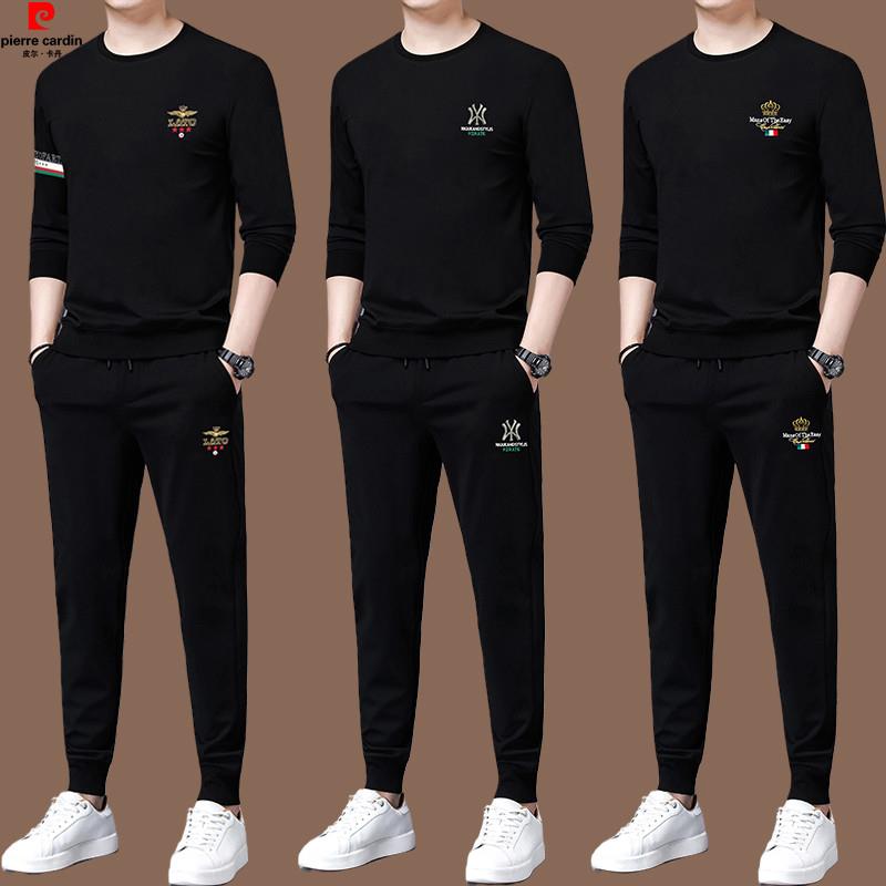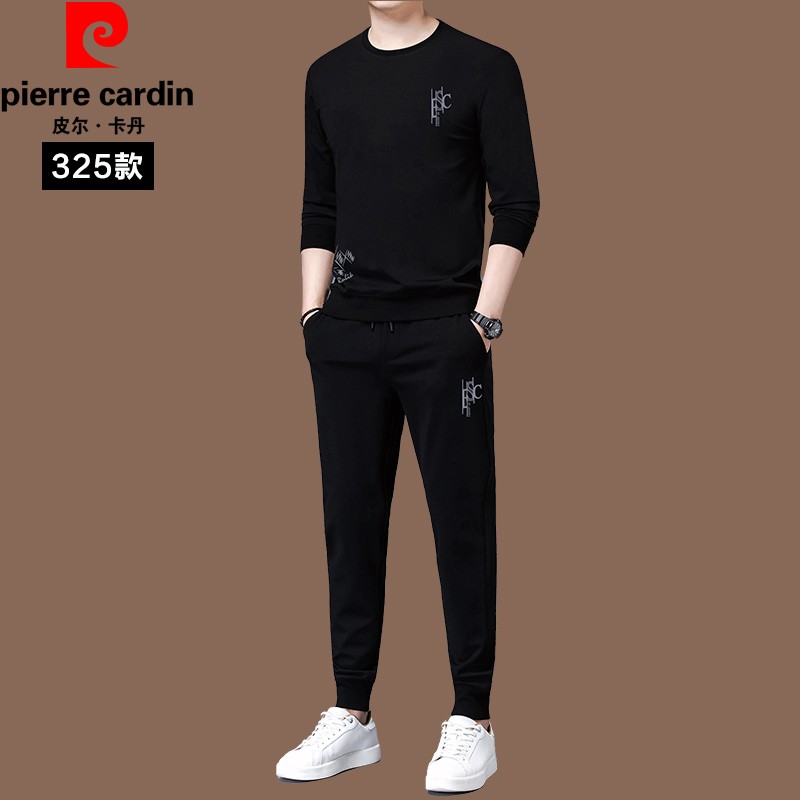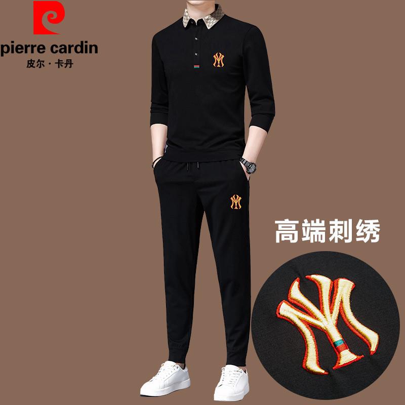 皮尔卡丹高端休闲运动服男套装正品新款春夏中年男士桑蚕丝两件套