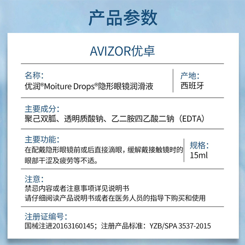 avizor优卓优润润眼液15ml角膜塑形镜隐形眼镜ok镜润滑液旗舰正品