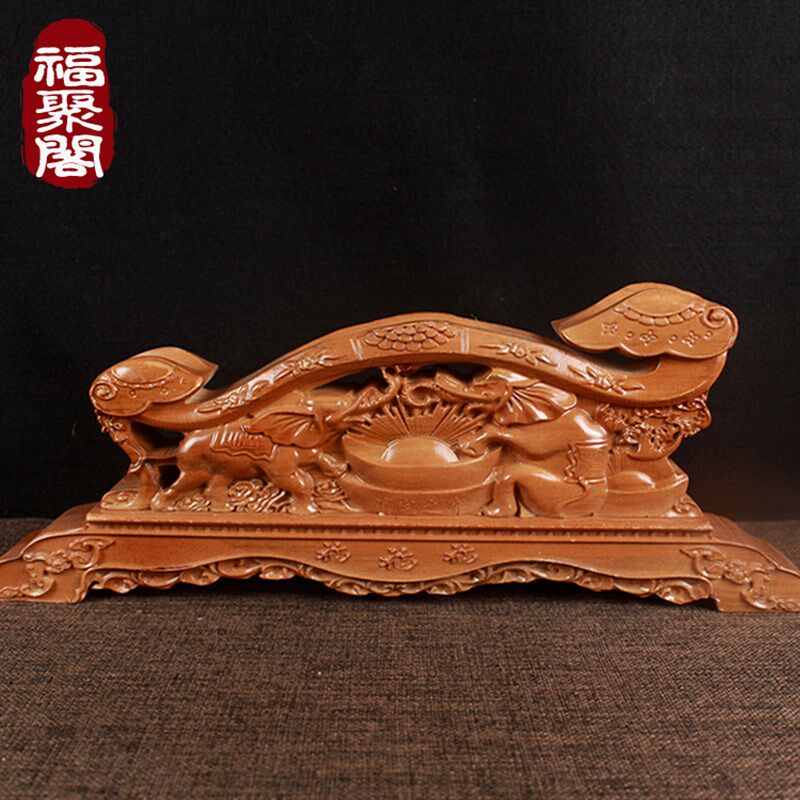 正宗肥城桃木剑架剑座实木龙座双面D底座木雕摆件横式剑托支架托