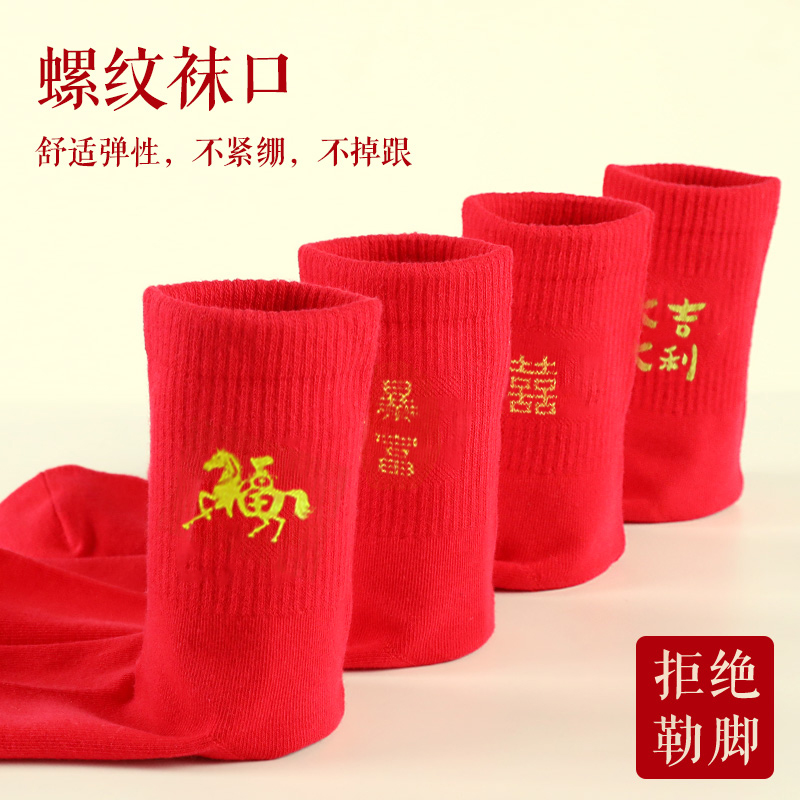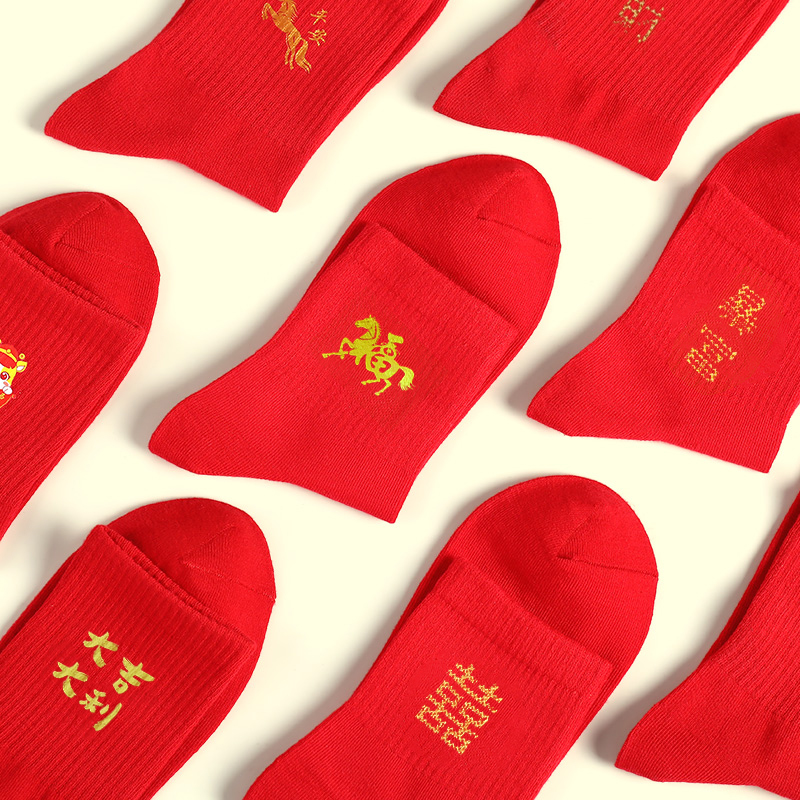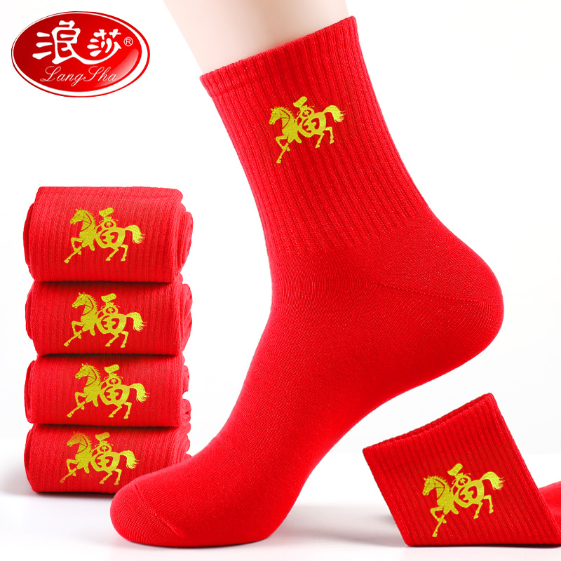 浪莎本命年大红色袜子男女士纯棉马年结婚情侣款过年礼物新年棉袜