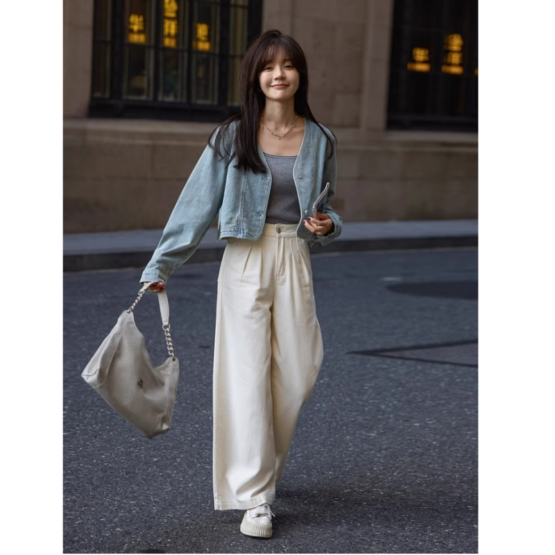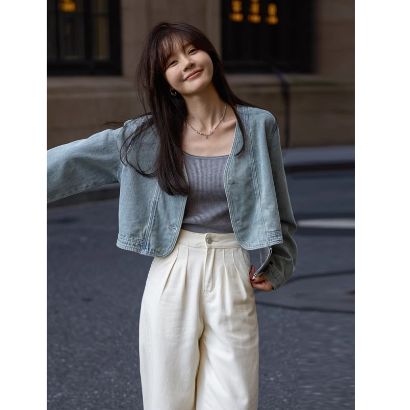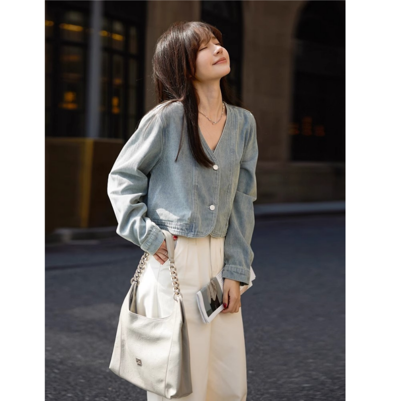 盐系时尚复古短款牛仔外套女新款春秋设计感小众宽松减龄上衣夹克