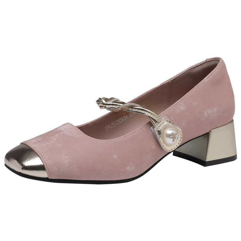大东玛丽珍鞋女2026新款秋季配裙子粗跟一字带粉色单鞋高跟鞋女鞋