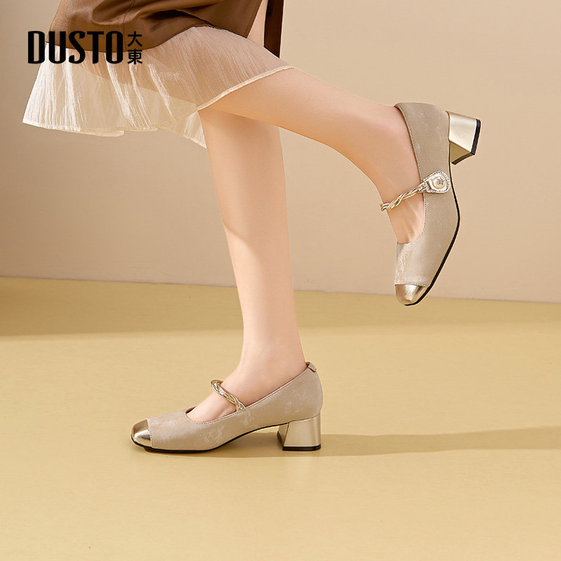 大东官方正品粗跟一字带单鞋高跟