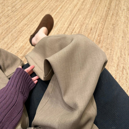 卡其色老钱风阔腿西装裤子春季大码女装运动休闲裤今年流行梧桐裤
