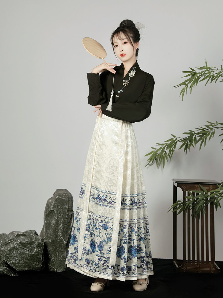 【青花】原创正品明制汉服女春秋季飞机袖交领刺绣国风日常马面裙