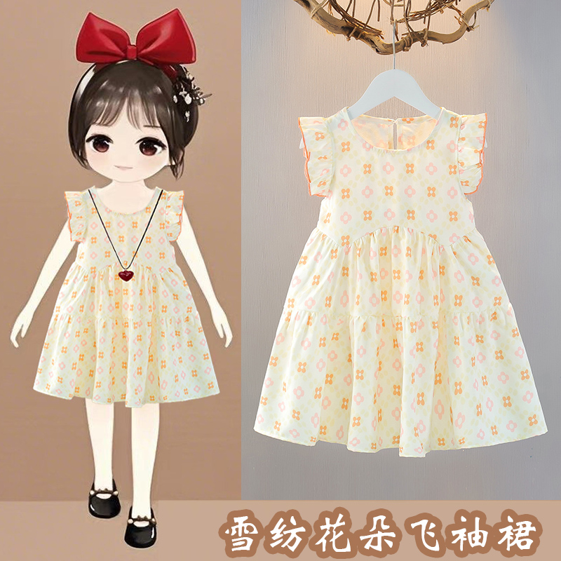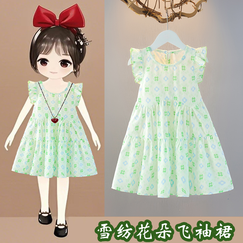 女童连衣裙夏季儿童夏款宝宝洋气碎花公主裙夏天清新小童圆领裙子