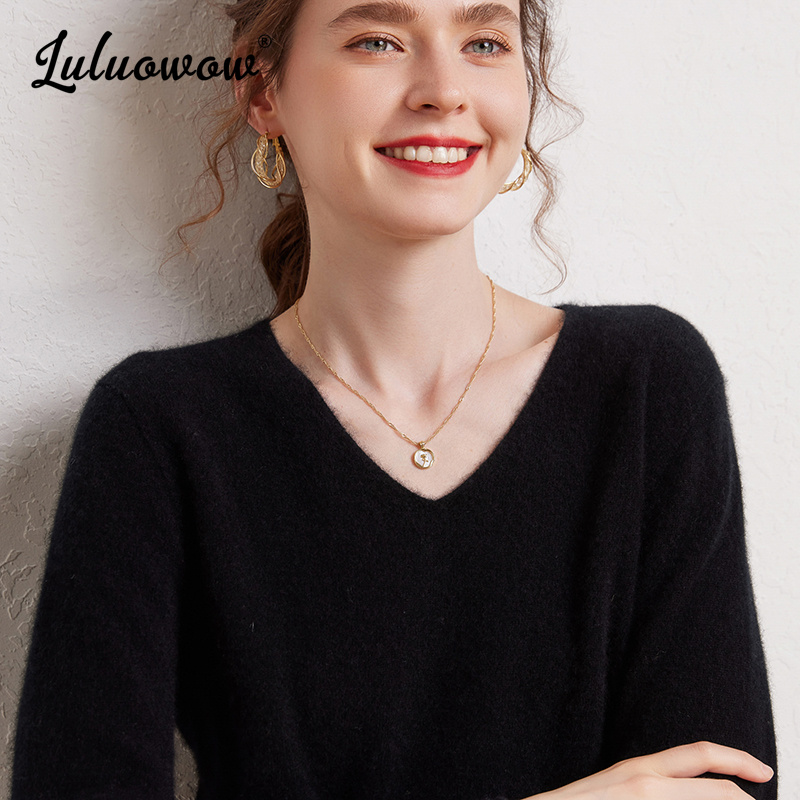 lulu owow高端100%山羊绒衫女2025秋冬季气质宽松毛衣针织打底衫