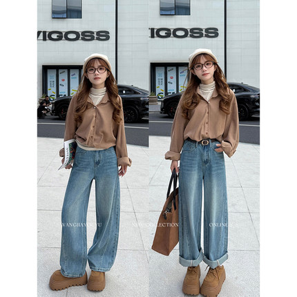 王家有鱼【小个子定制】2025怀旧弯刀裤女爆款百搭牛仔裤时尚裤子