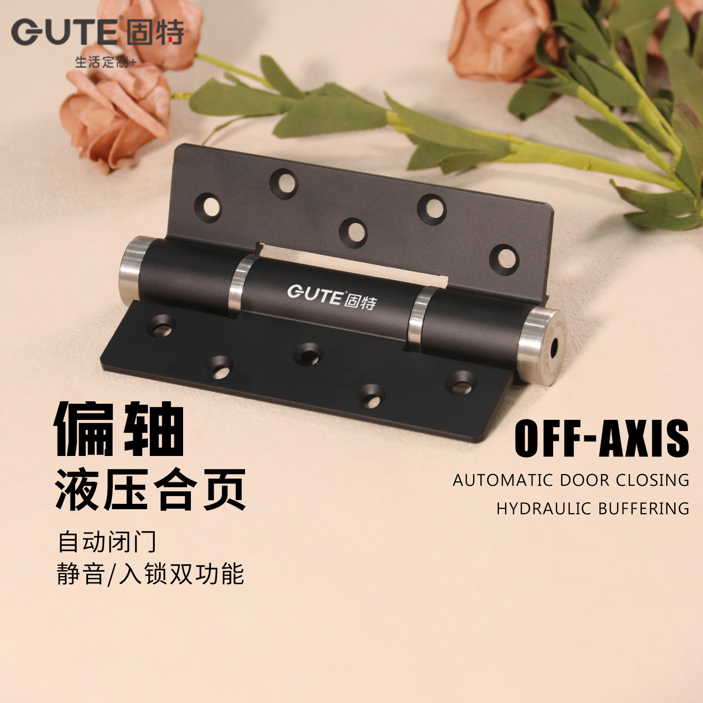 固特偏轴隐形门合页液压缓冲自动关门弹簧回弹自闭铰链闭门器荷叶