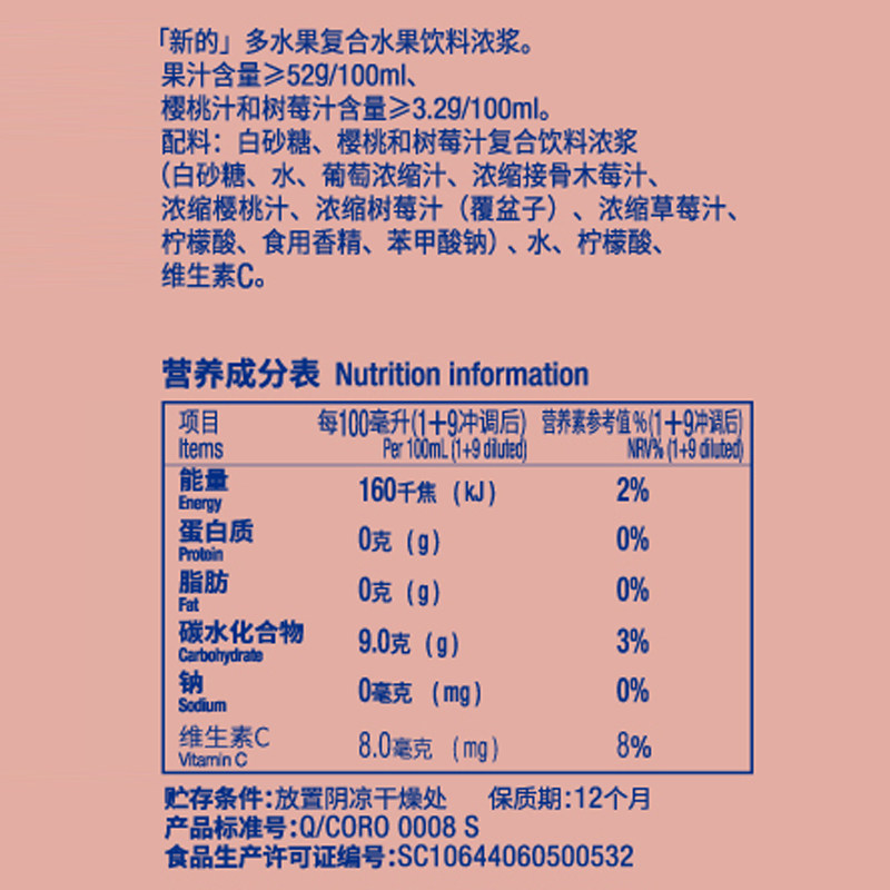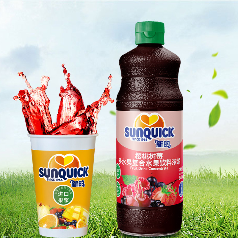 【官方直营】Sunquick/新的浓缩樱桃树莓果汁840ML车厘子奶茶调酒