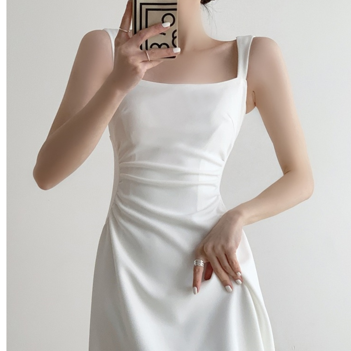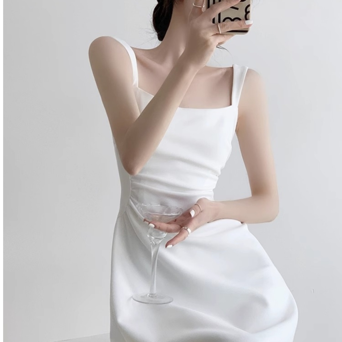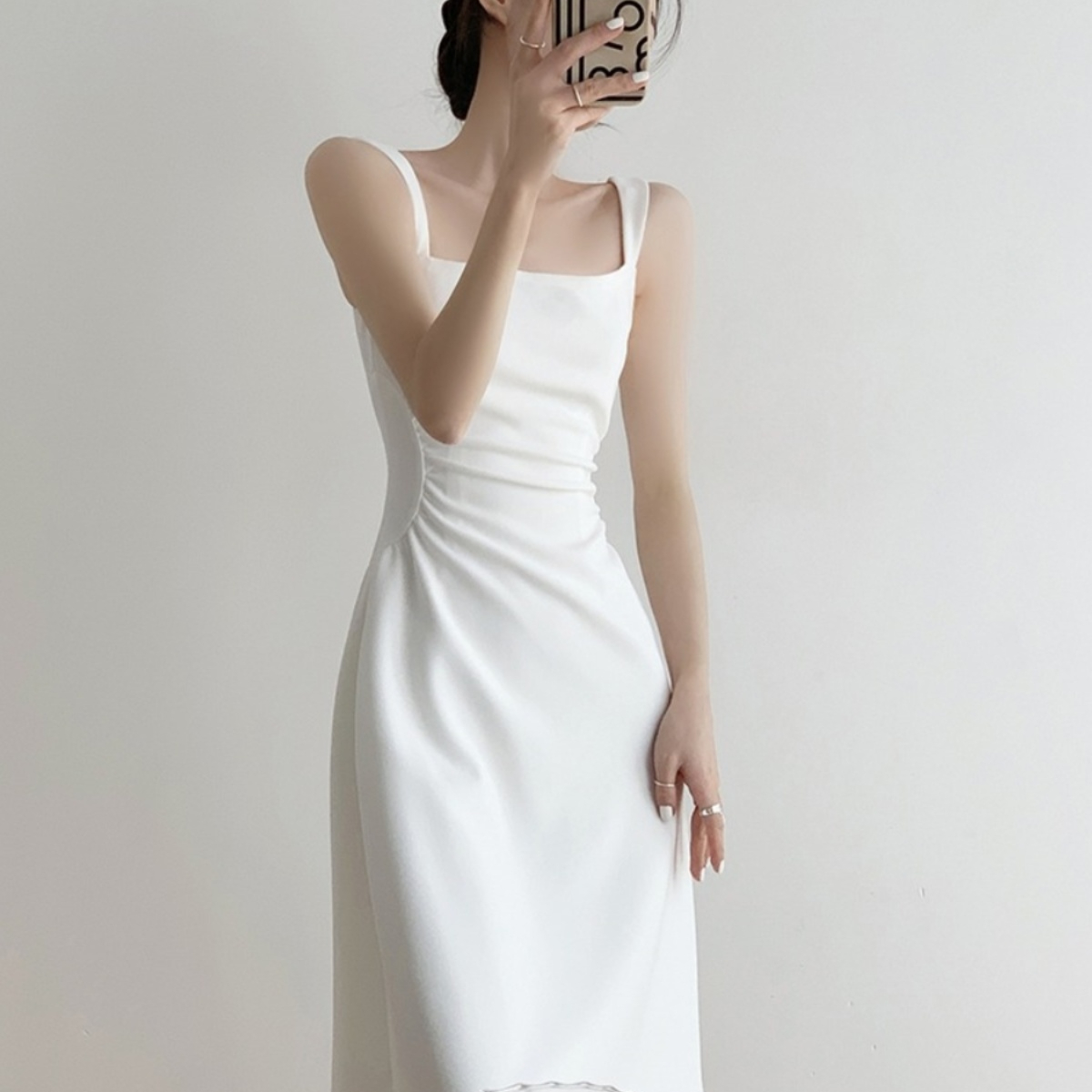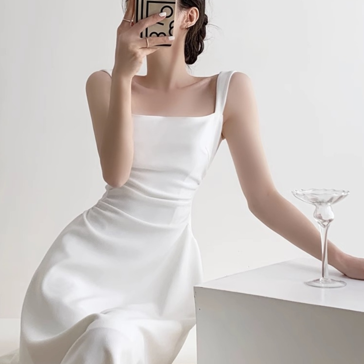 法式白色收腰显瘦吊带连衣裙子女