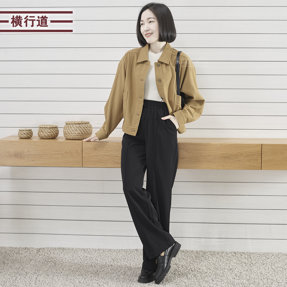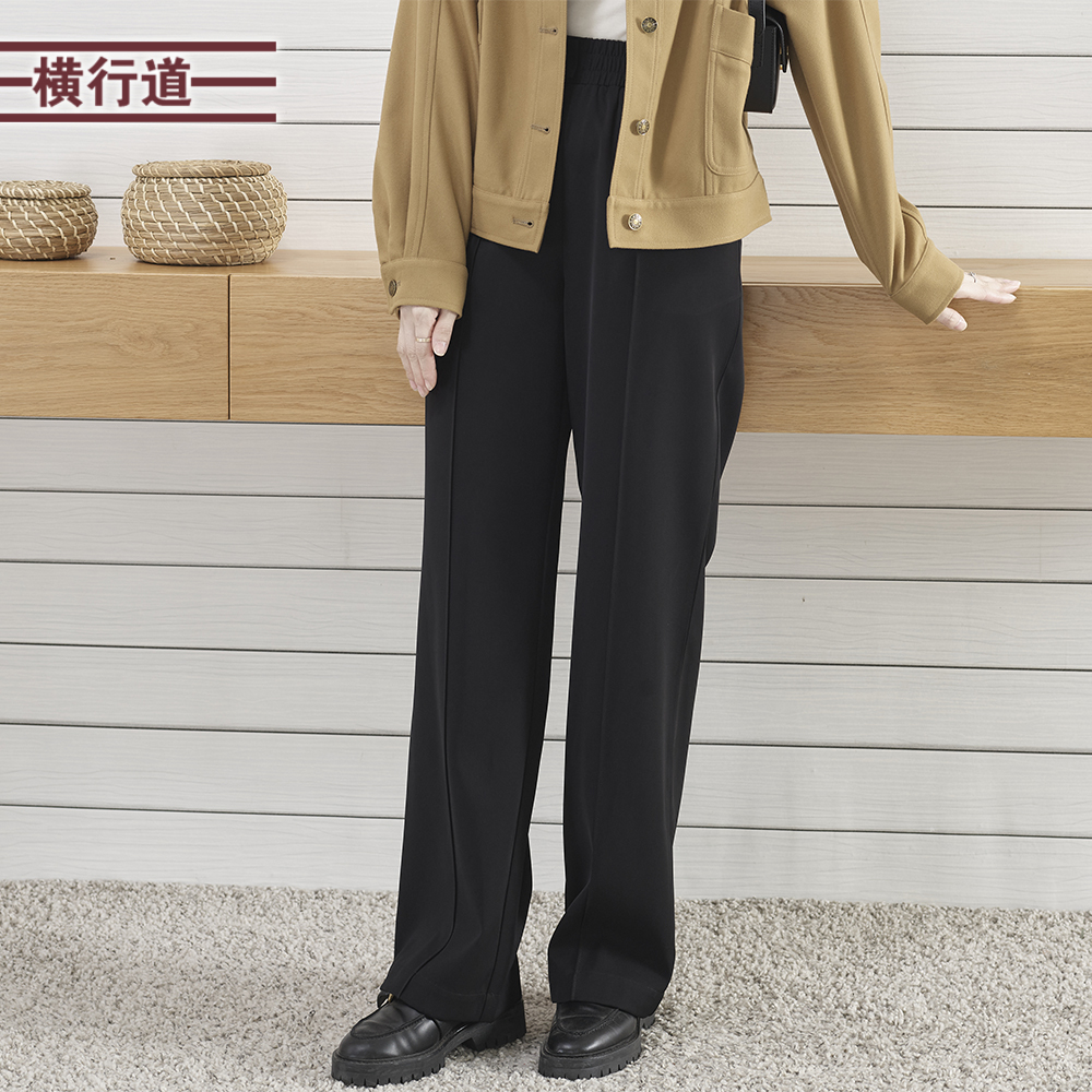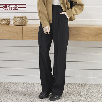 松紧腰阔腿纽扣西装长裤2025新款纯色宽松休闲裤黑色女款下装大码