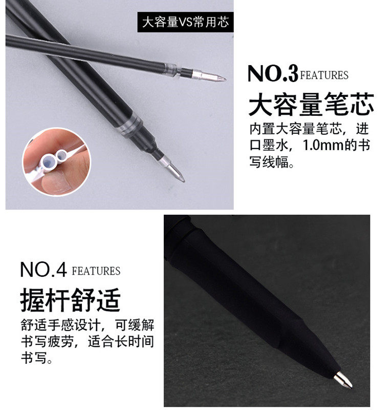 包邮宝克超大容量0.5/0.7/1.0mm黑色中性笔芯及笔1828/1838