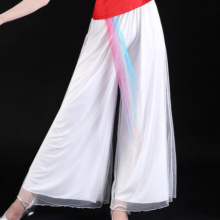 网纱阔腿裤广场舞裤女高腰宽松舞蹈长裤古典舞跳舞演出喇叭裤新款