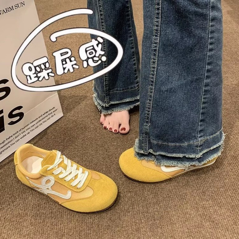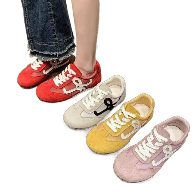 英国真皮红色德训鞋女秋季2025新款爆款网面网鞋薄款运动阿甘板