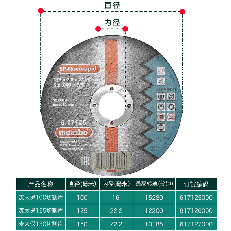 Metabo麦太保100/125/15B0mm不锈钢切割片砂轮片角磨机金属切片