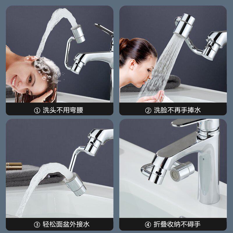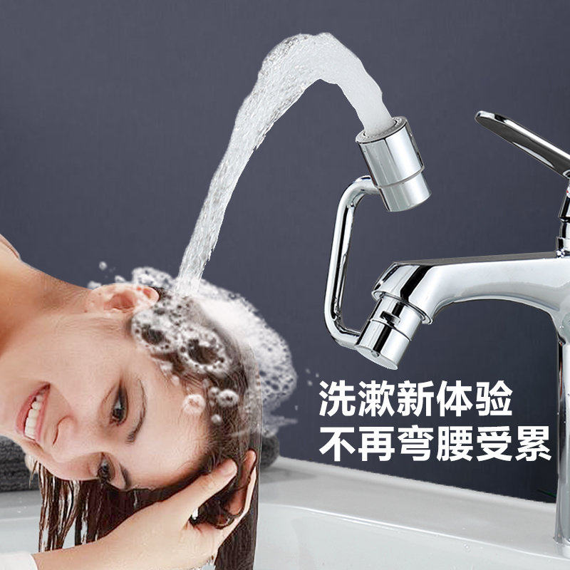 全铜万向水龙头机械臂洗脸盆旋转洗头漱口延伸水嘴防溅厨房起泡器