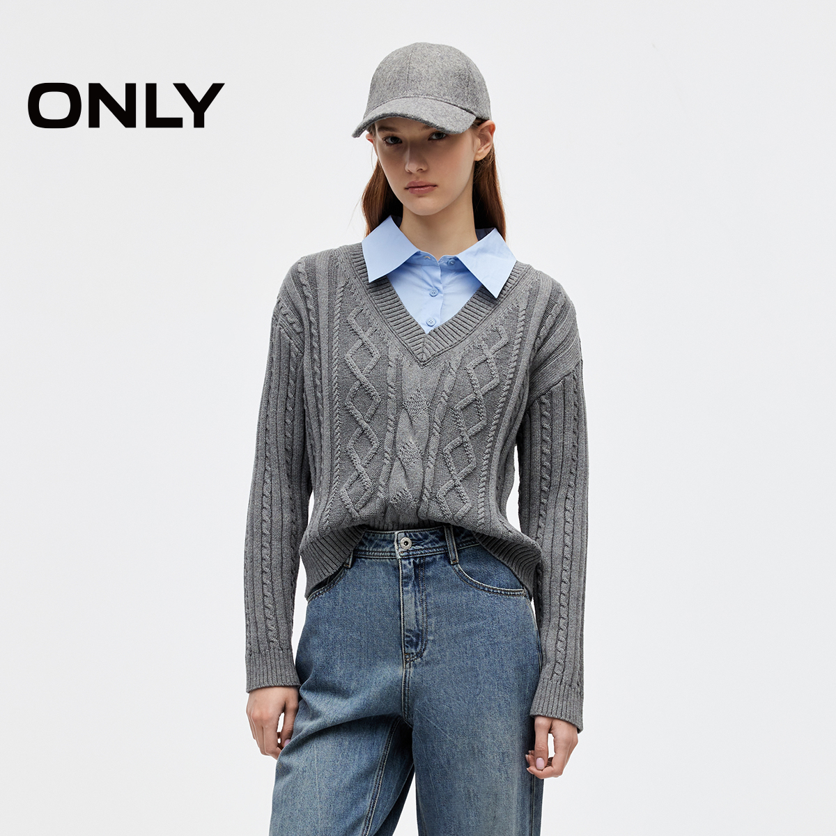 【所有女生的衣橱直播间】ONLY绞花/学院风假两件针织衫