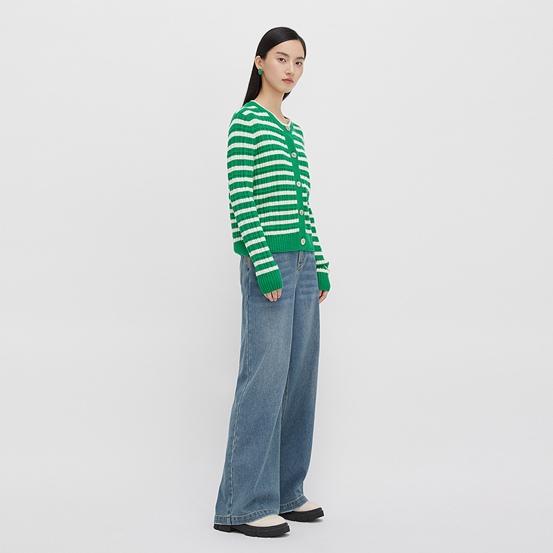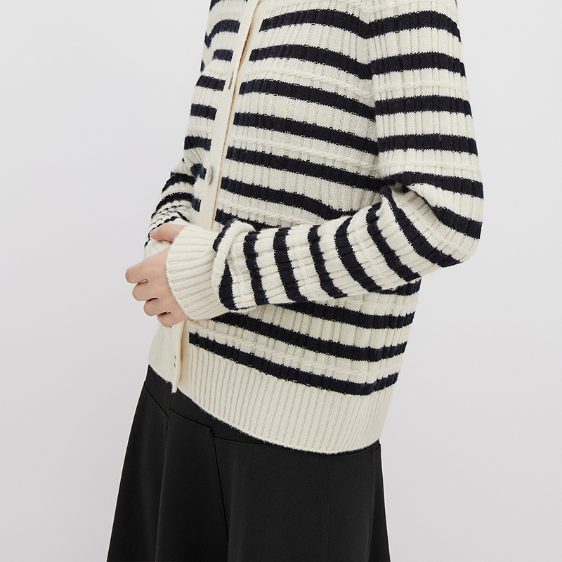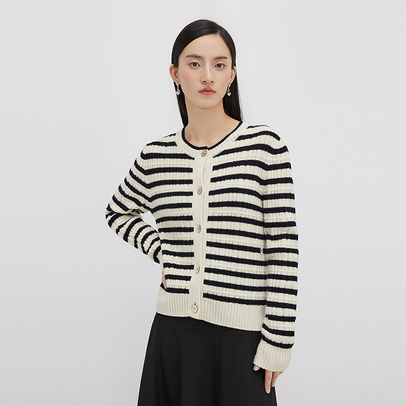 播100%羊毛针织开衫女冬季季商场同款慵懒短款条纹毛衣BDQ4UD0966