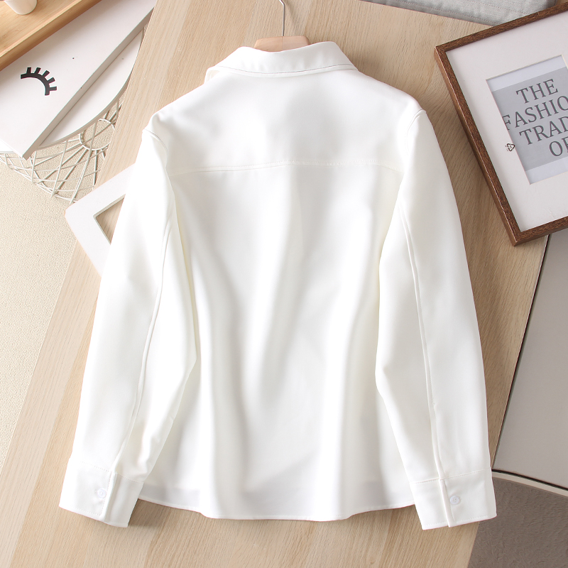 法式通勤风撞色明线半开襟POLO领长袖白衬衫女装春夏新品简约上衣