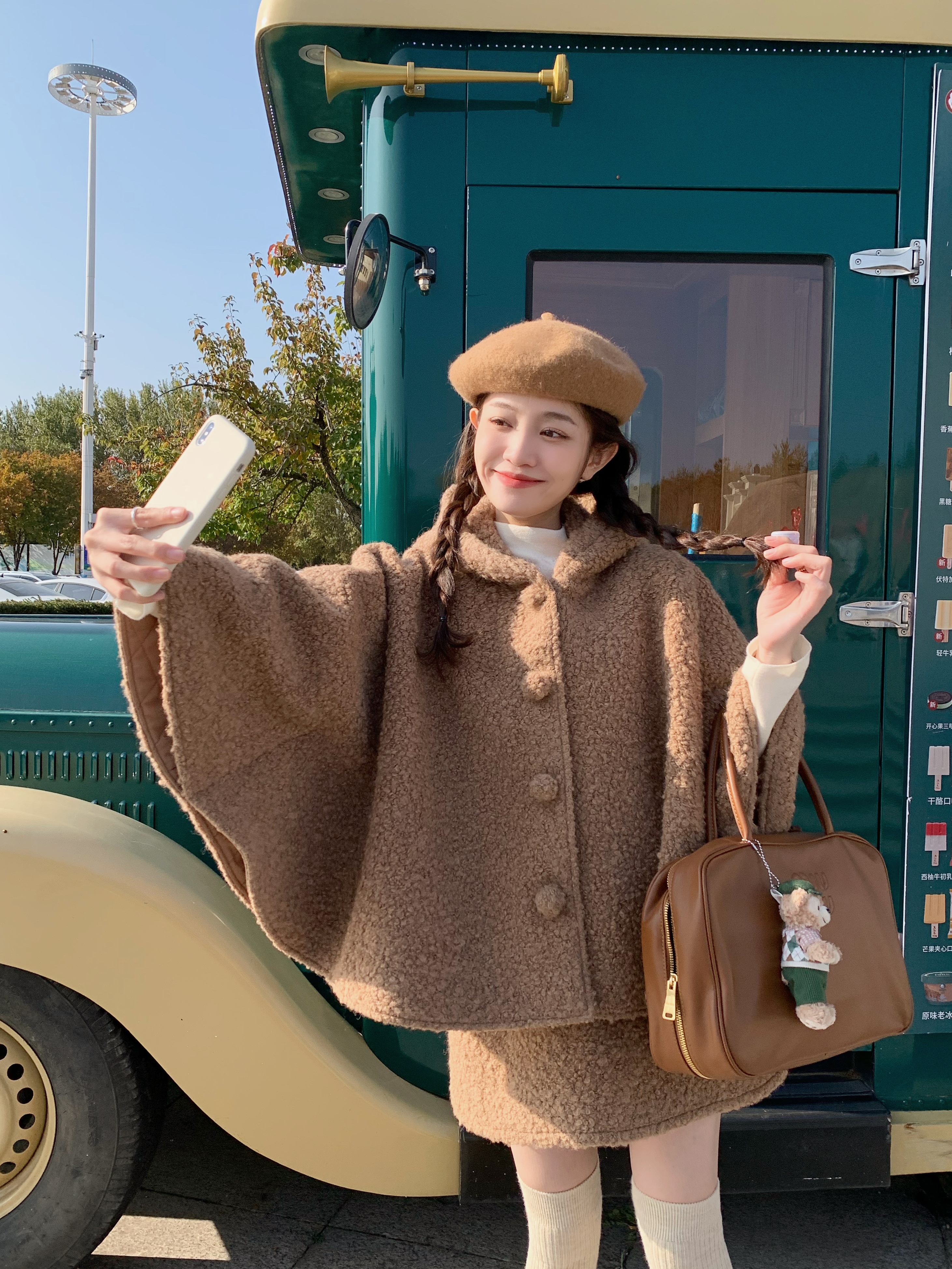 FF BLUE 魔法森林迷失小鹿 羊羔毛短款斗篷厚实马甲背心裙五件套